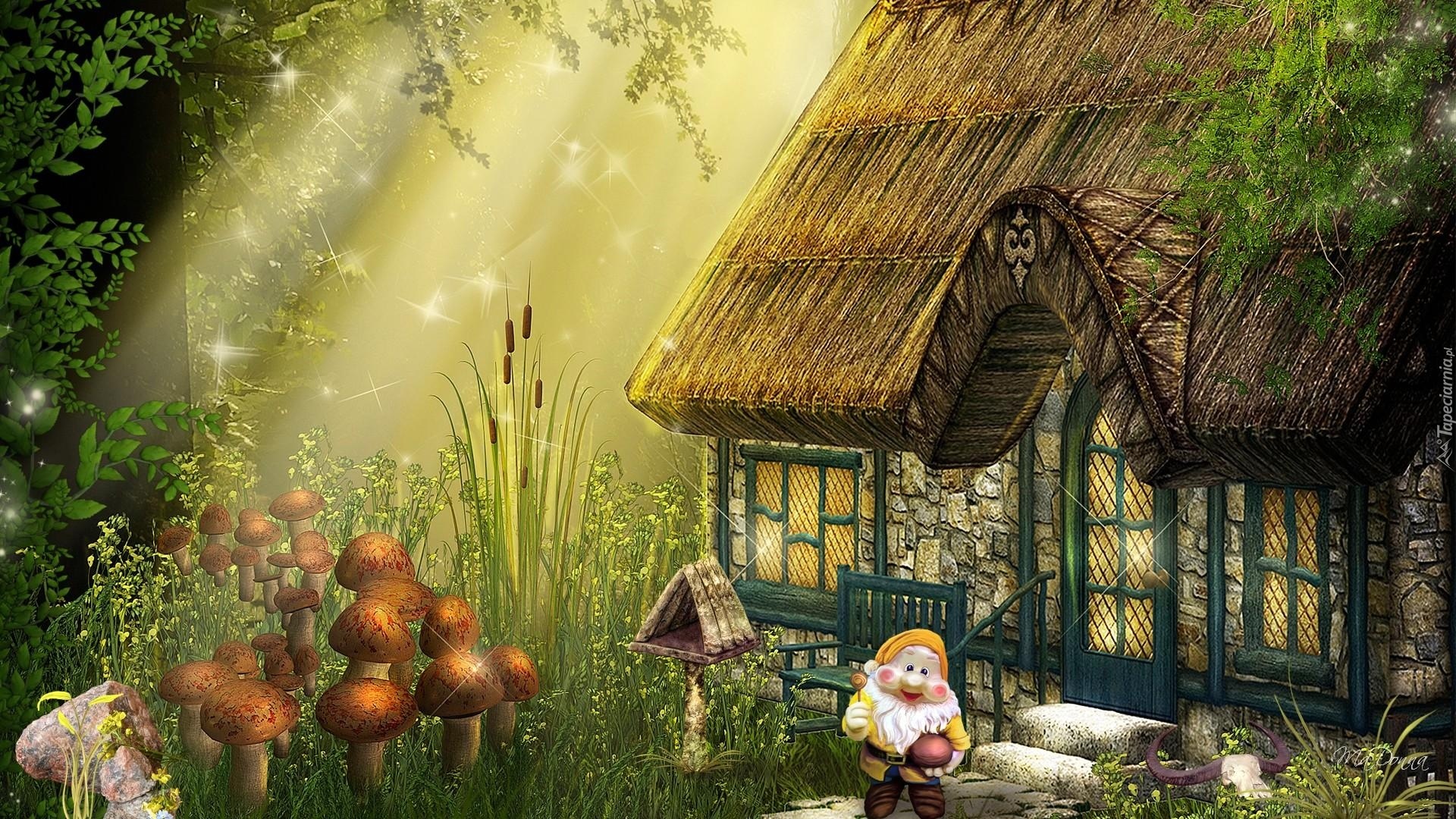 Edytor tapety: Dom, Grzybki, Ogród, Krasnal
