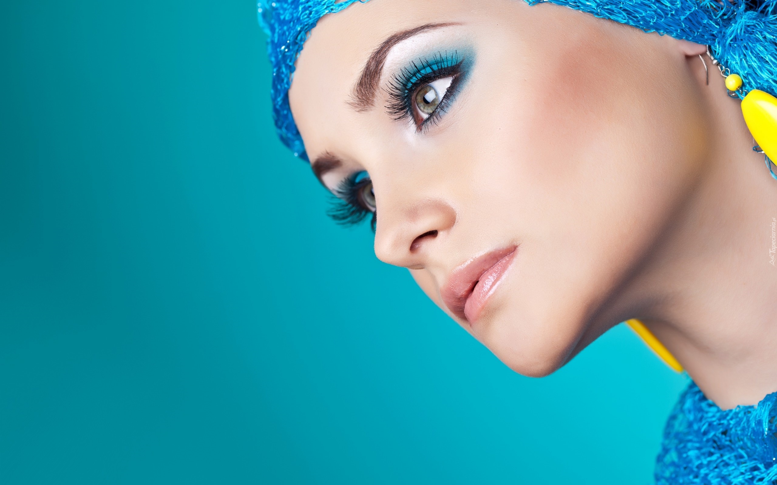 Edytor tapety: Kobieta, Profil, Makijaż, Żółte kolczyki