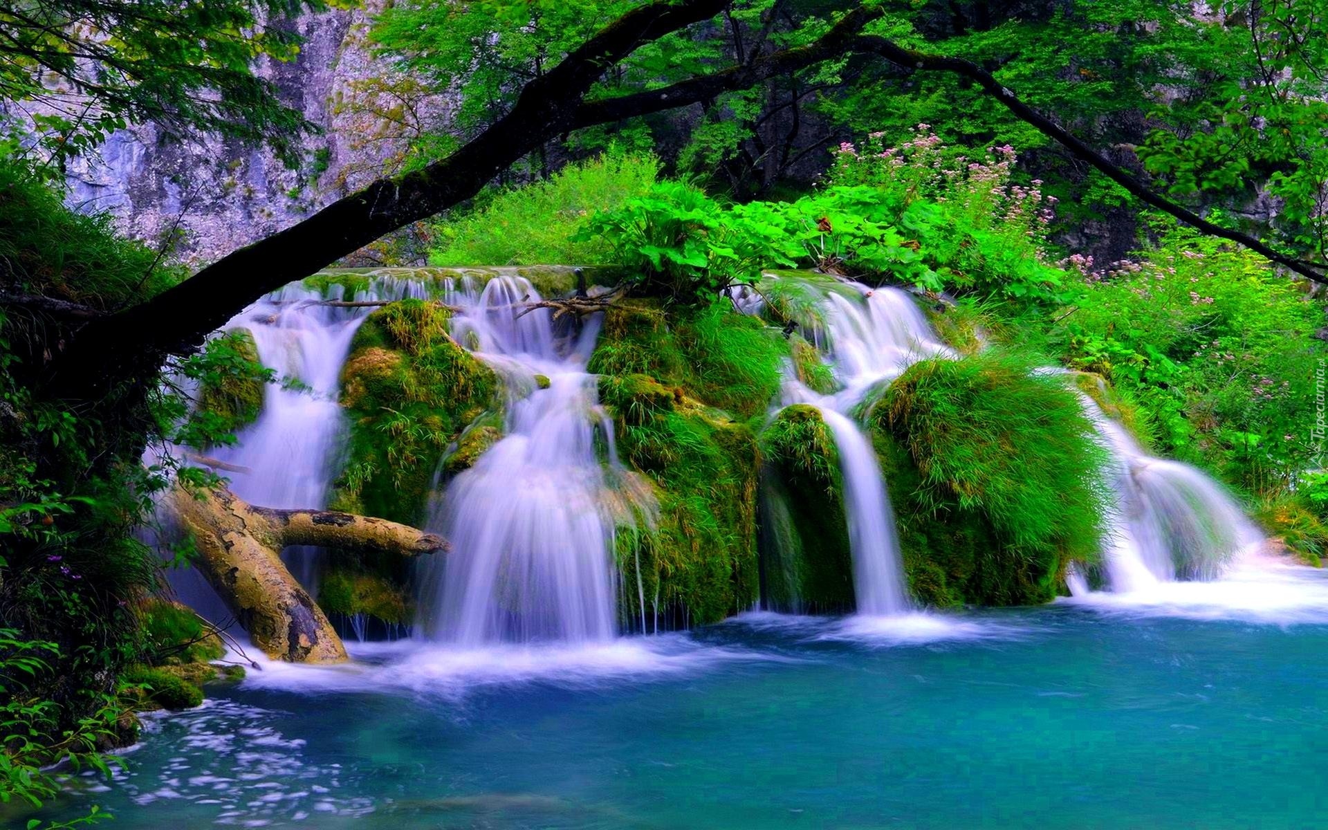 Edytor tapety: Wodospad, Jeziorko, Drzewa