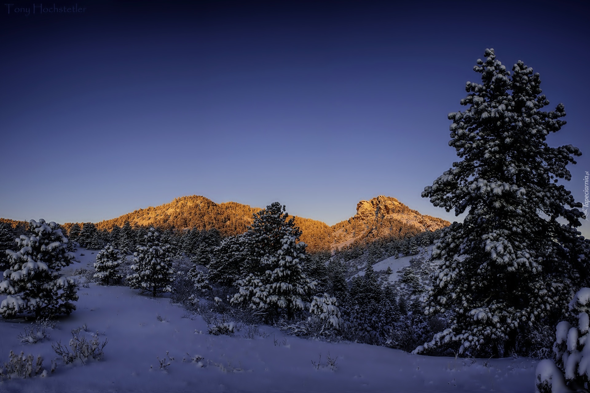 Edytor tapety: Zima, Góry, Świerki