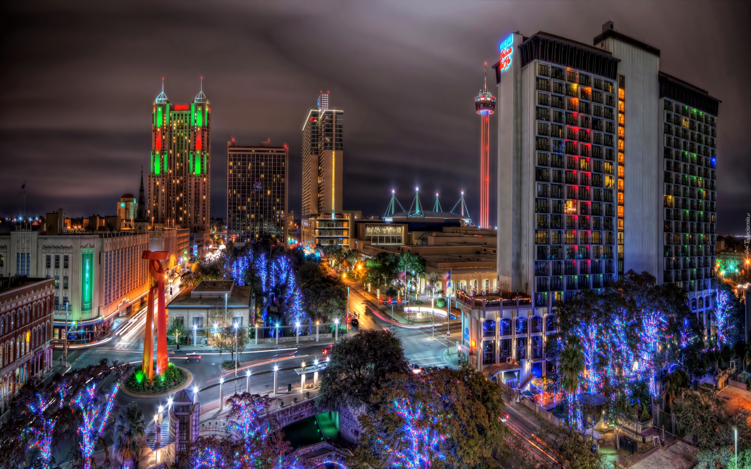 Edytor tapety: Drapacze, Chmur, San Antonio, Miasto, Nocą