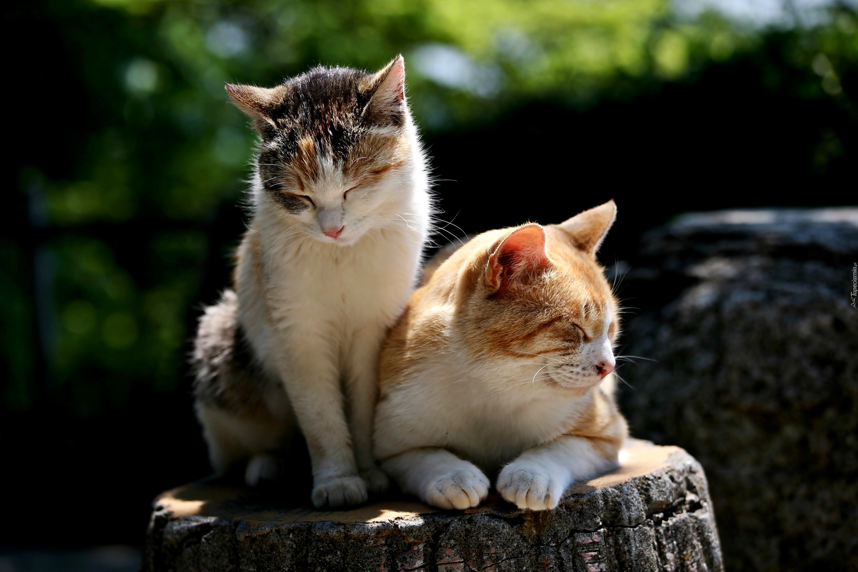 Edytor tapety: Dwa, Koty, Pień, Drzewa