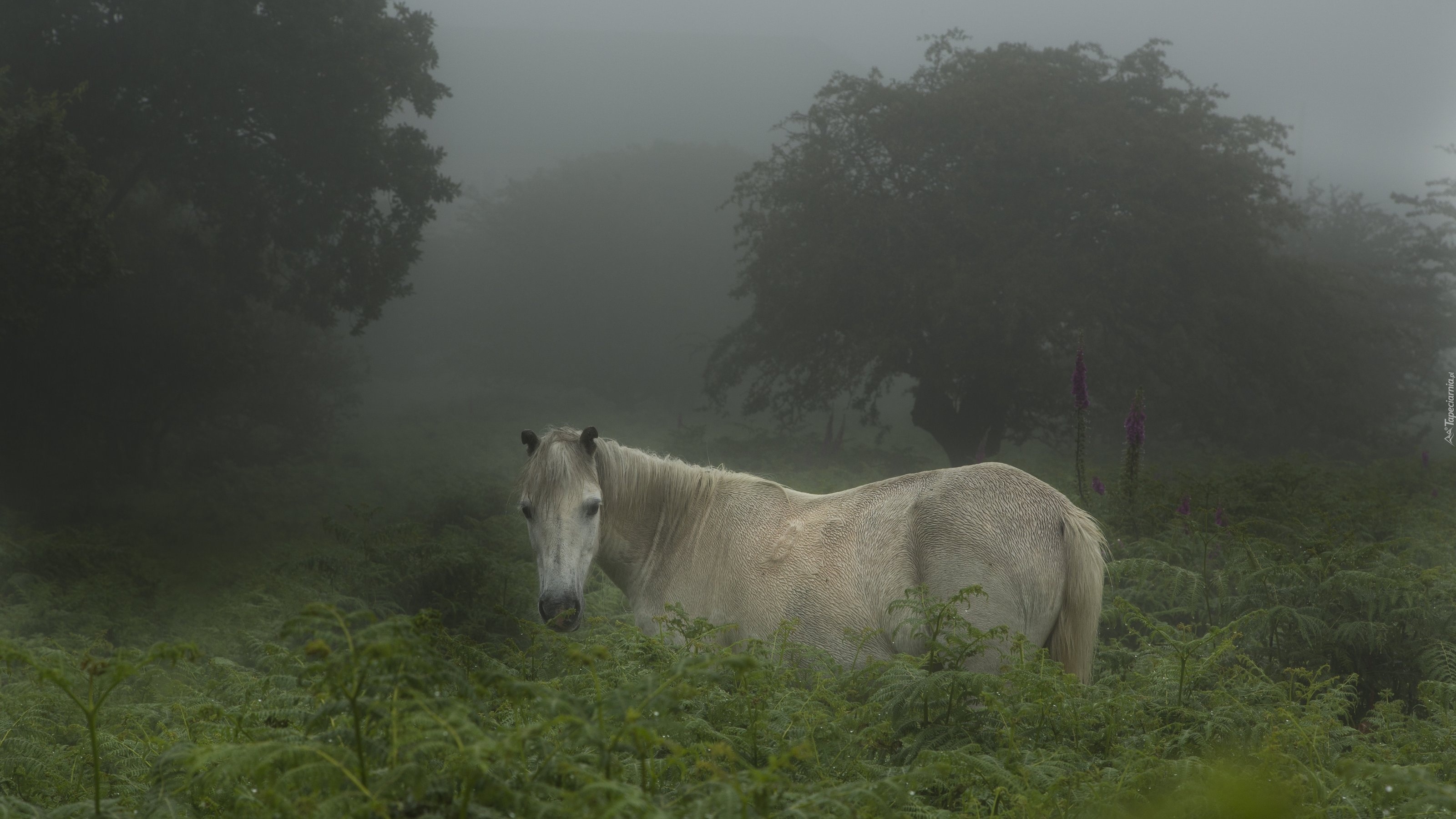 Edytor tapety: Koń, Las, Mgła