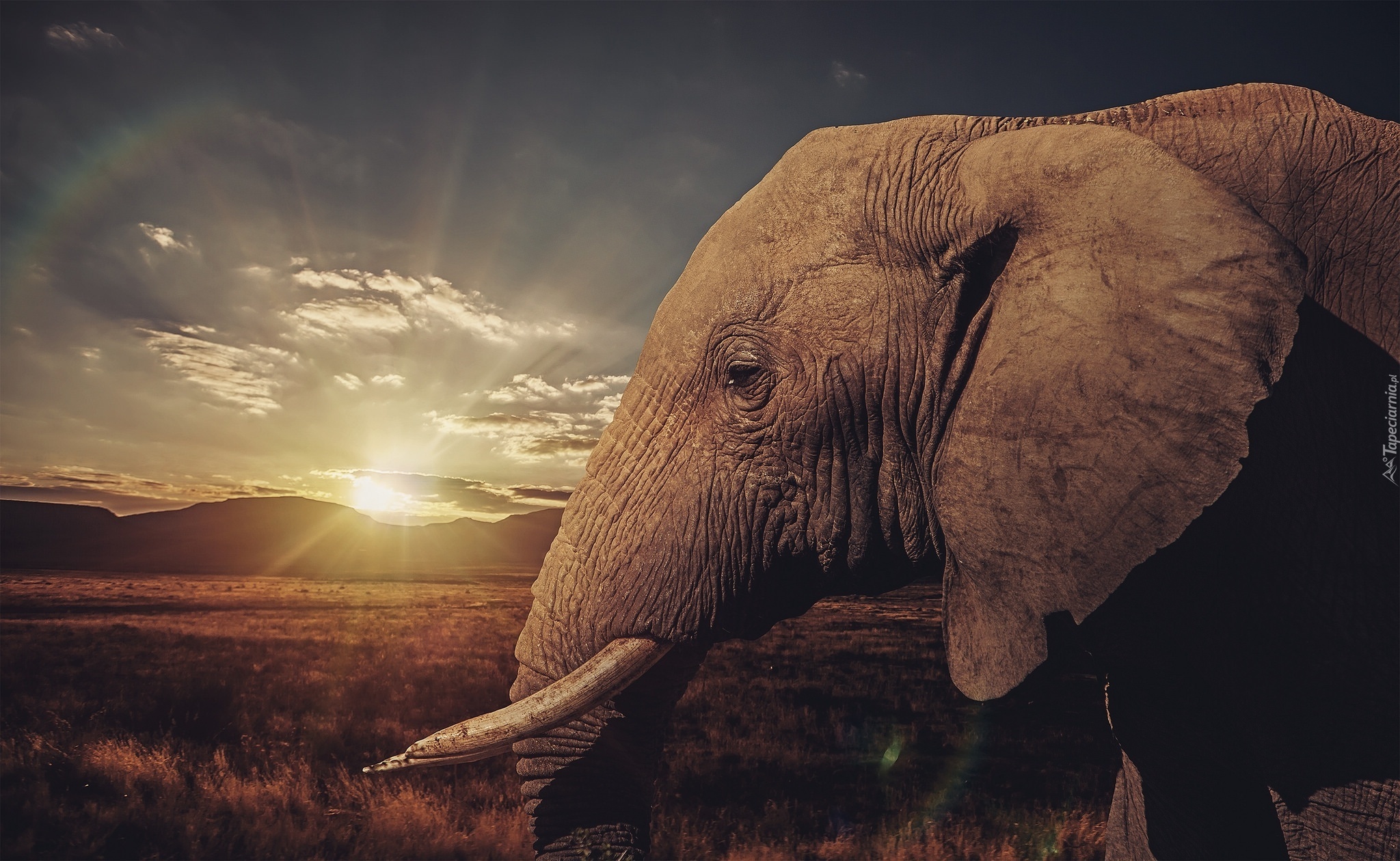 Edytor tapety: Słoń, Promienie, Słońca