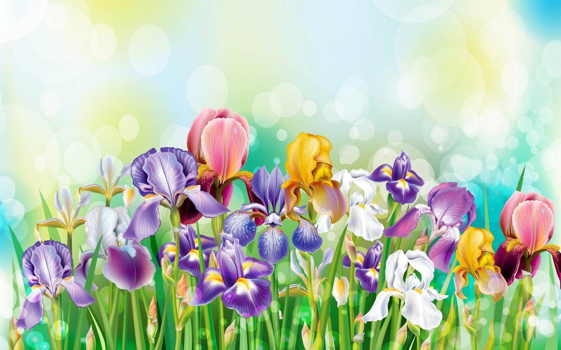 Edytor tapety: Kwiat, Kolorowe Irysy, Grafika, Art