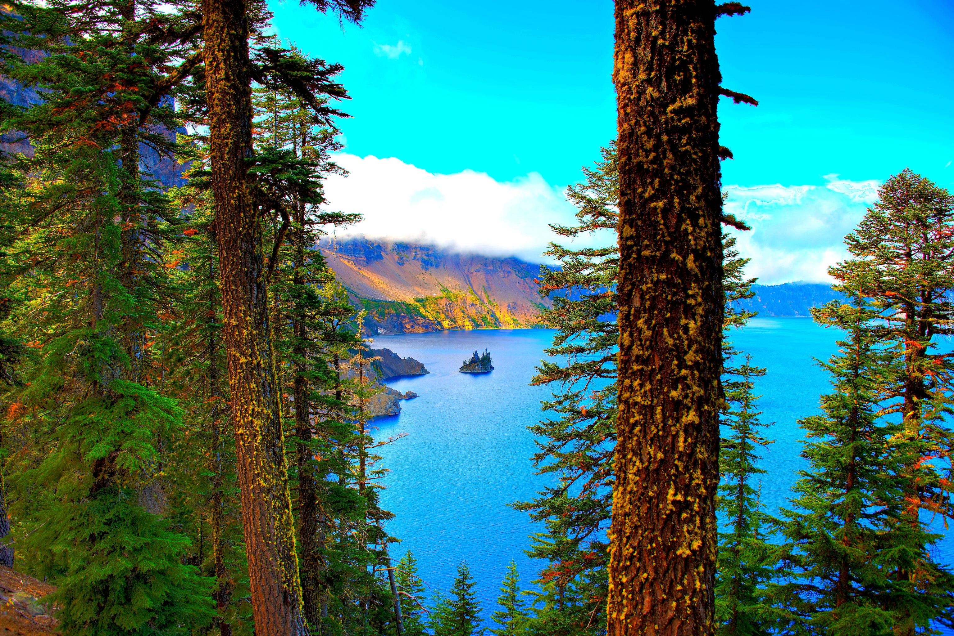 Edytor tapety: Jezioro, Wysepka, Drzewa