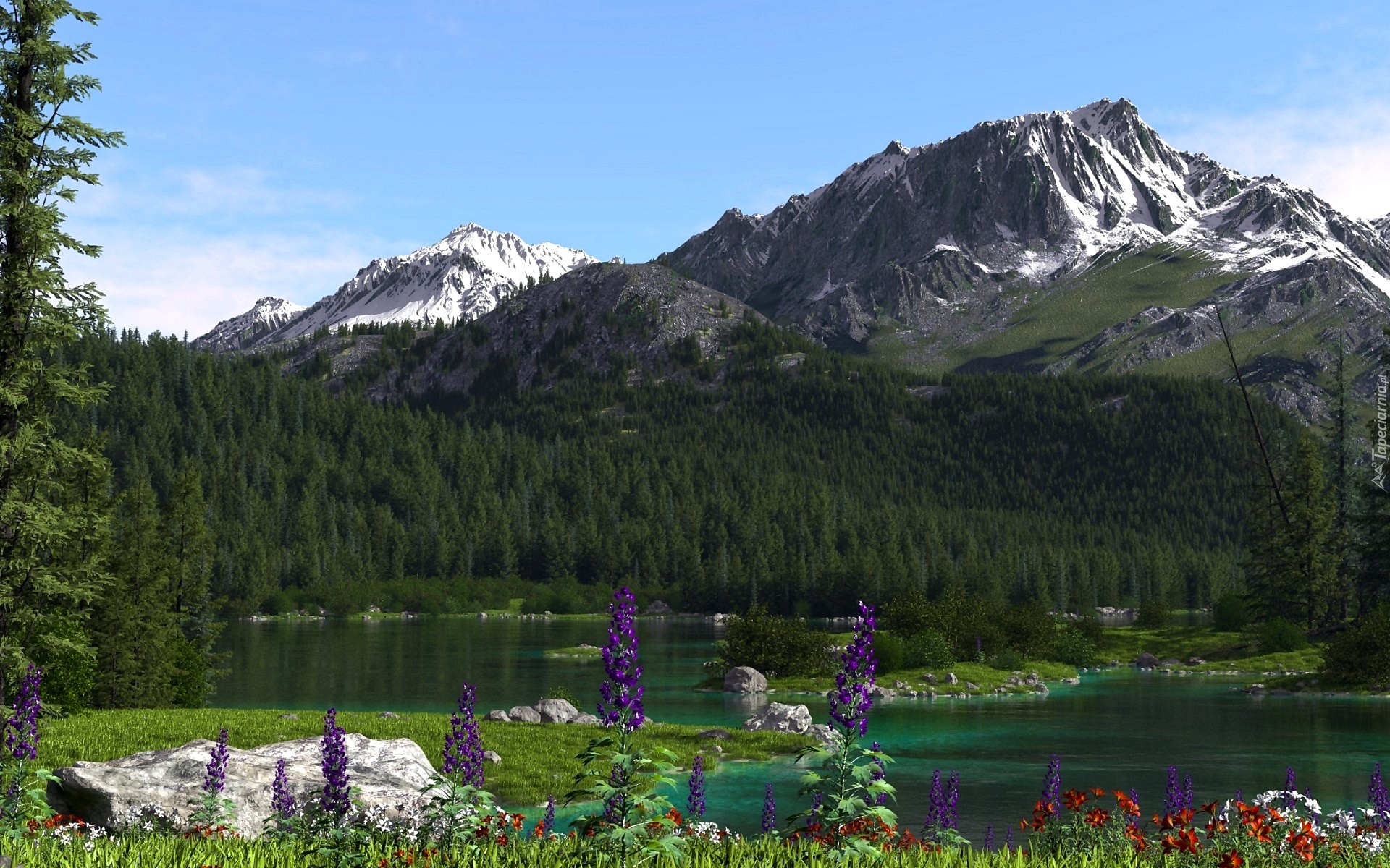 Edytor tapety: Góry, Lasy, Rzeka, Lato