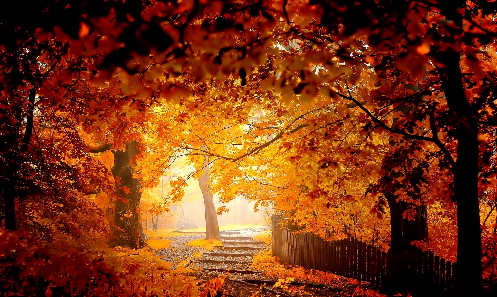 Edytor tapety: Jesień, Park, Płotek, Liście
