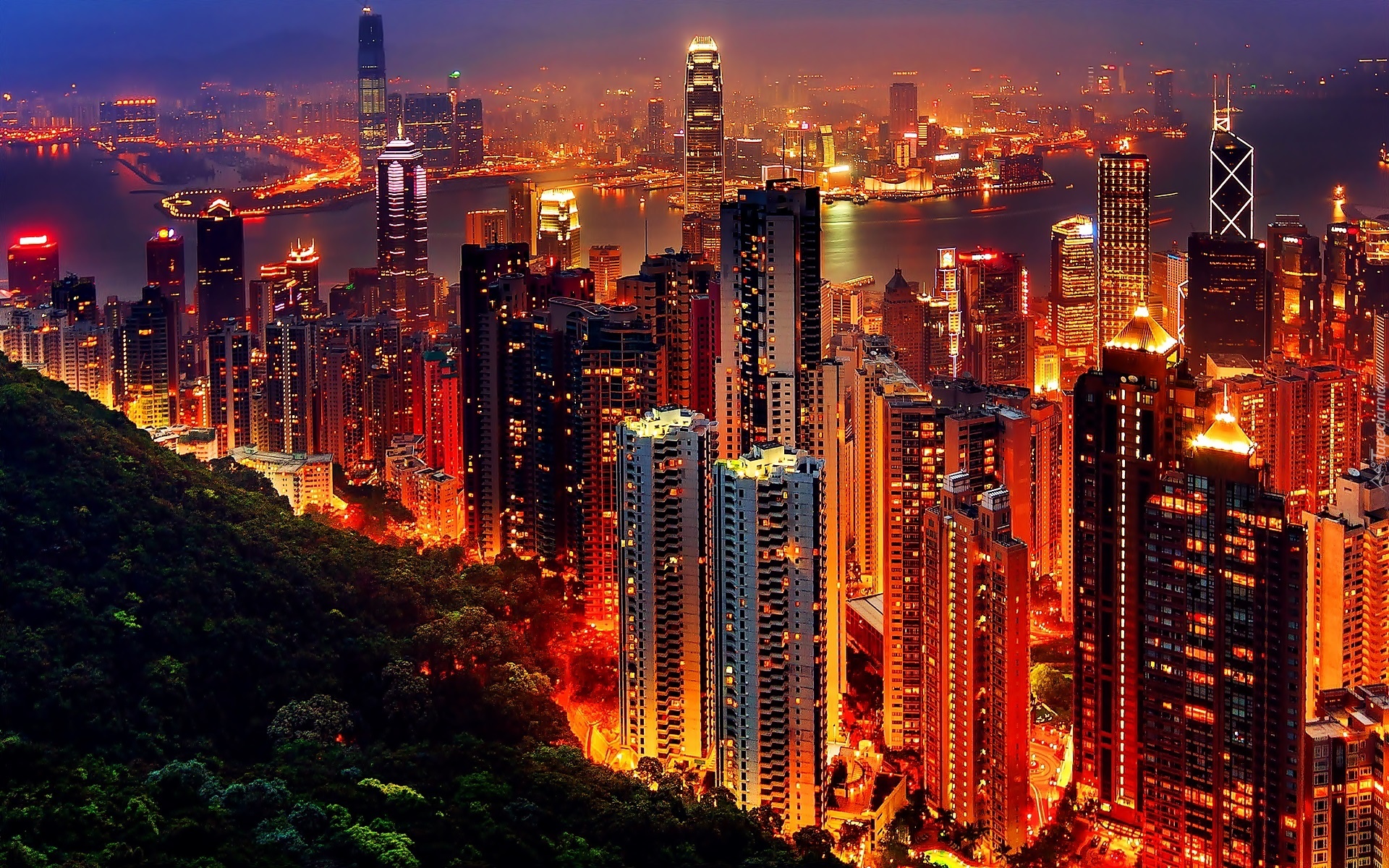 Edytor tapety: Drapacze, Chmur, Hong Kong, Panorama, Miasta, Nocą