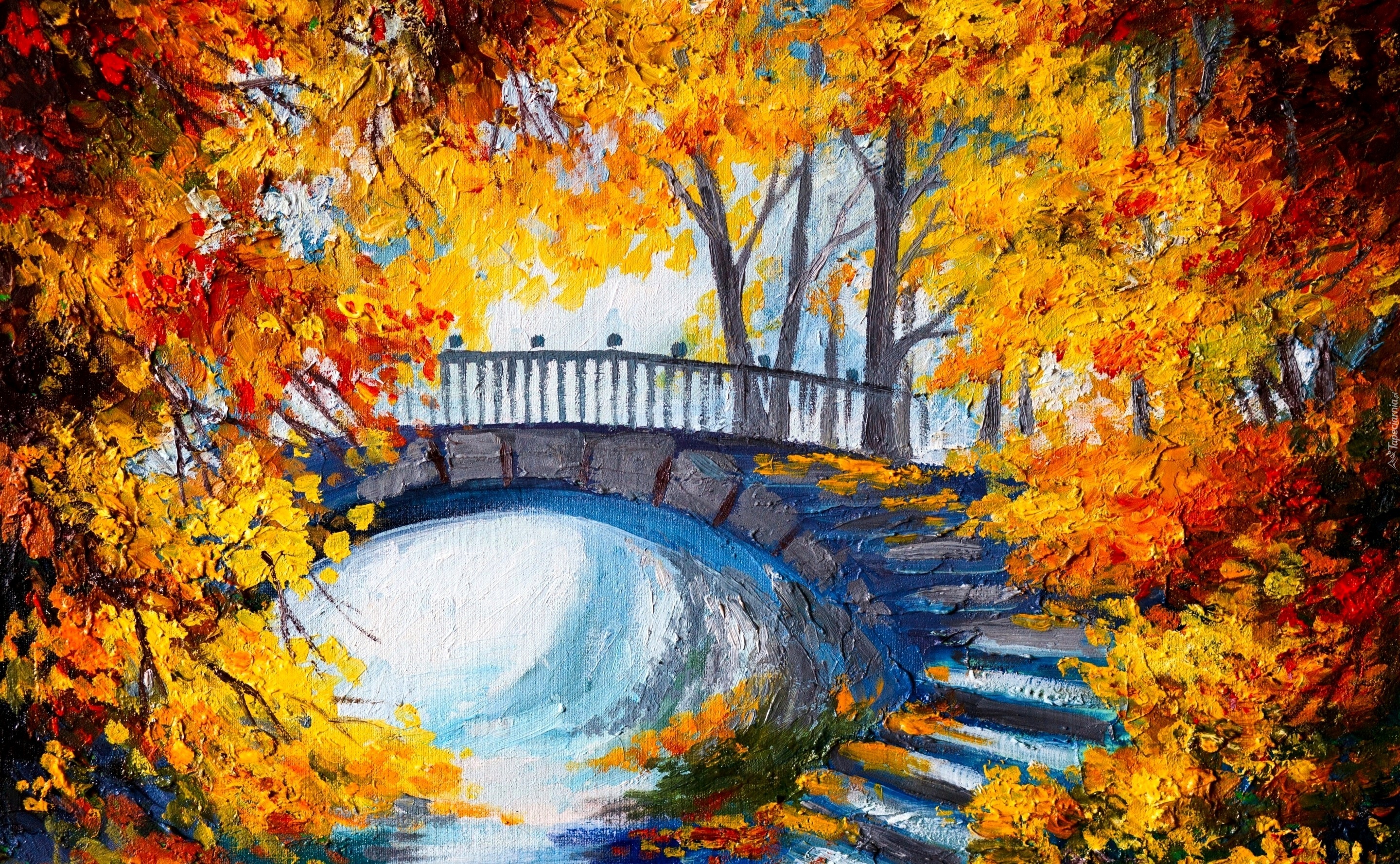 Edytor tapety: Park, Most, Jesień, Obraz, Olej