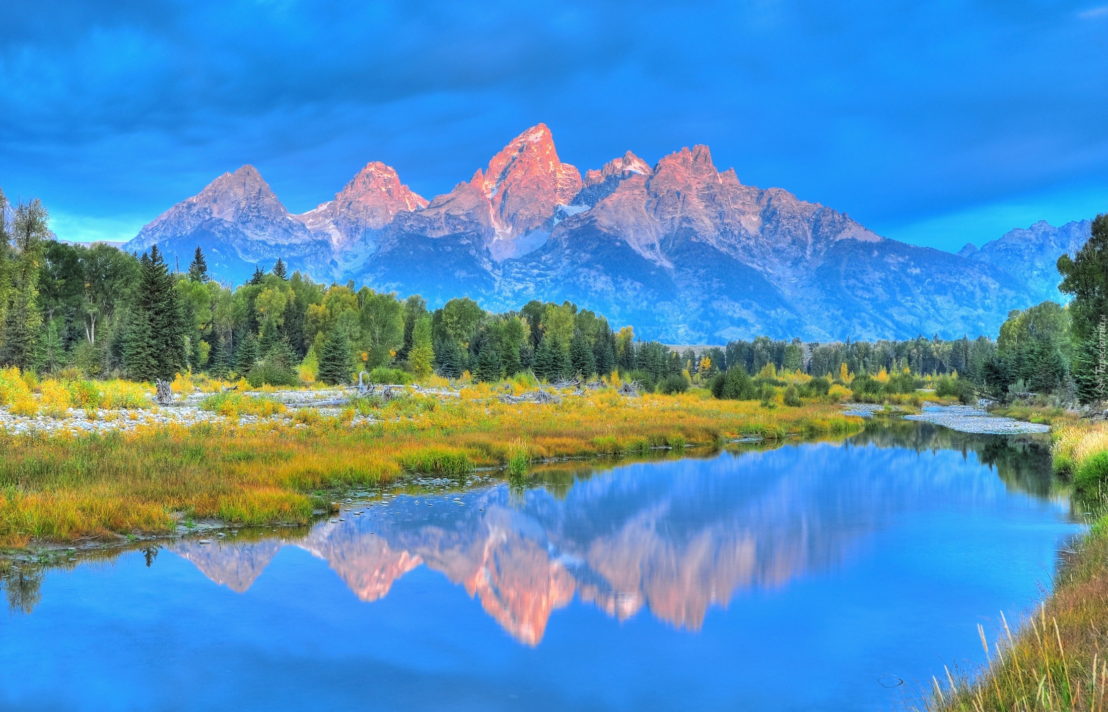 Edytor tapety: Góry, Odbicie, Rzeka, Lasy