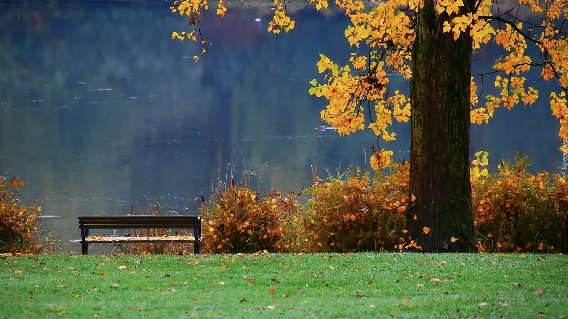 Edytor tapety: Jesień, Jezioro, Ławka, Park