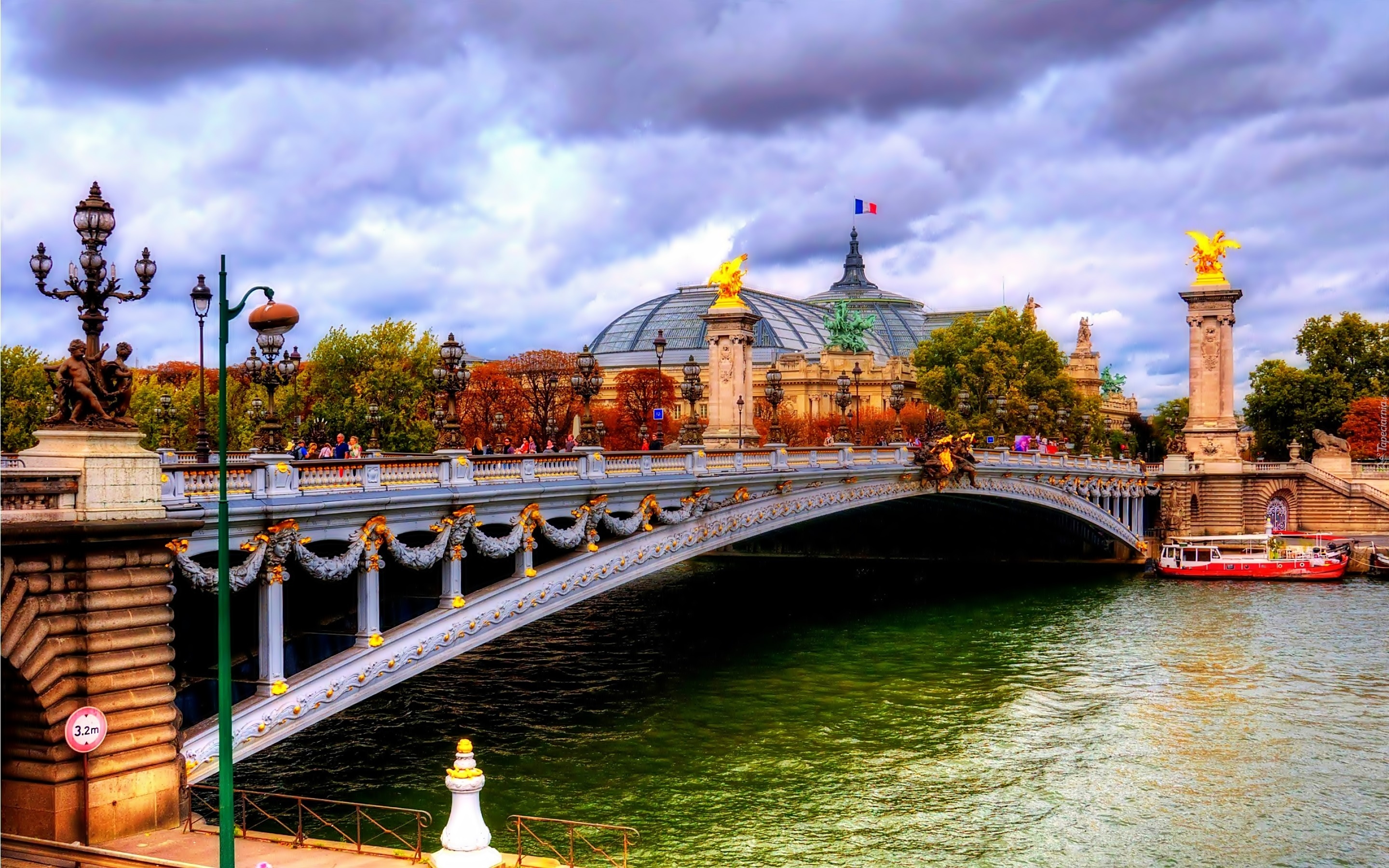 Edytor tapety: Most, Sekwana, Łódź, Chmury, Paryż, Fragment, Miasta