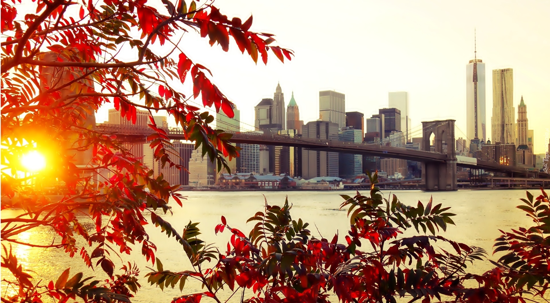 Edytor tapety: Most, Rzeka, Wieżowce, Jesienne, Liście