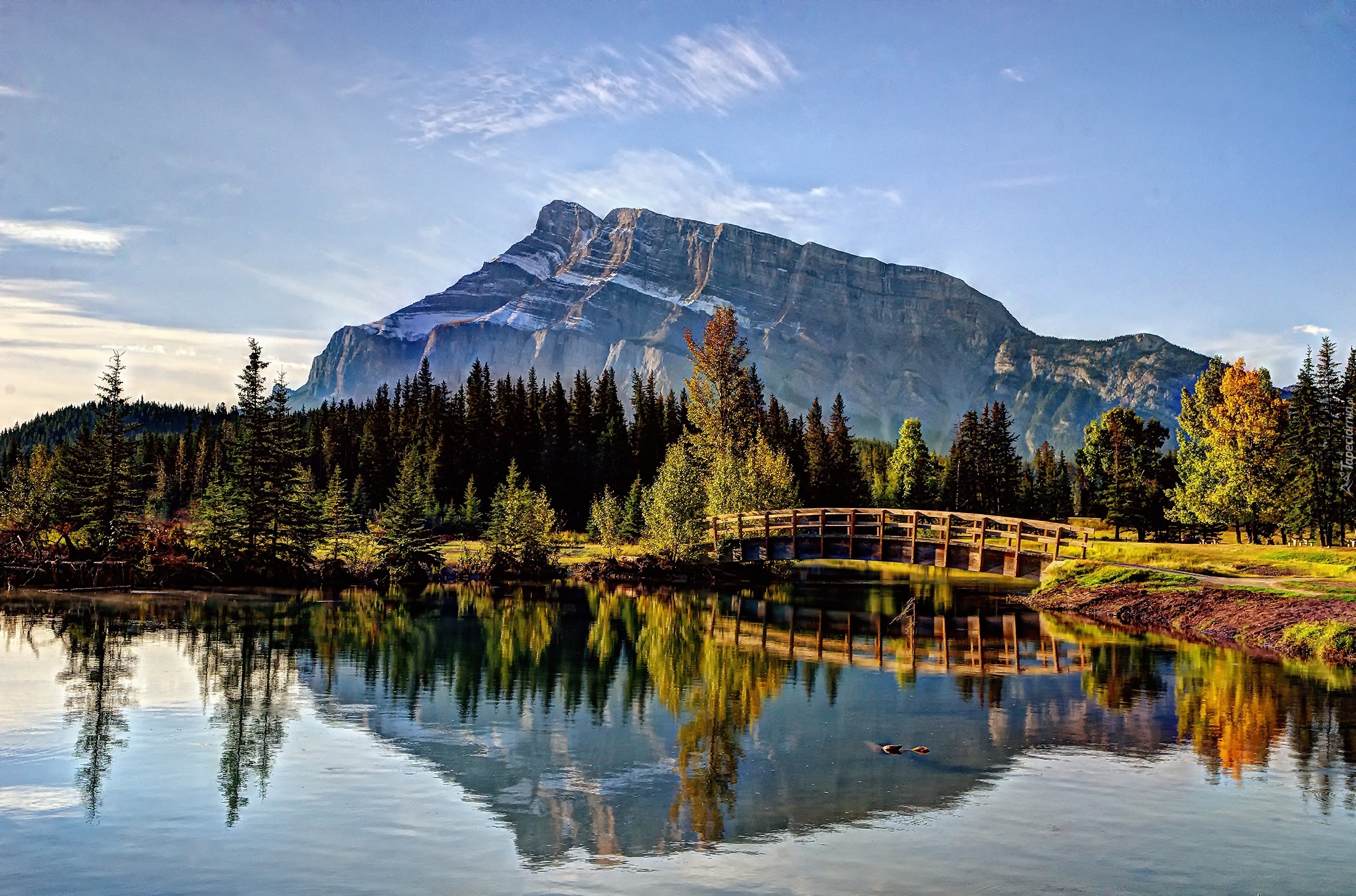 Edytor tapety: Góry, Jesień, Las, Rzeka, Most