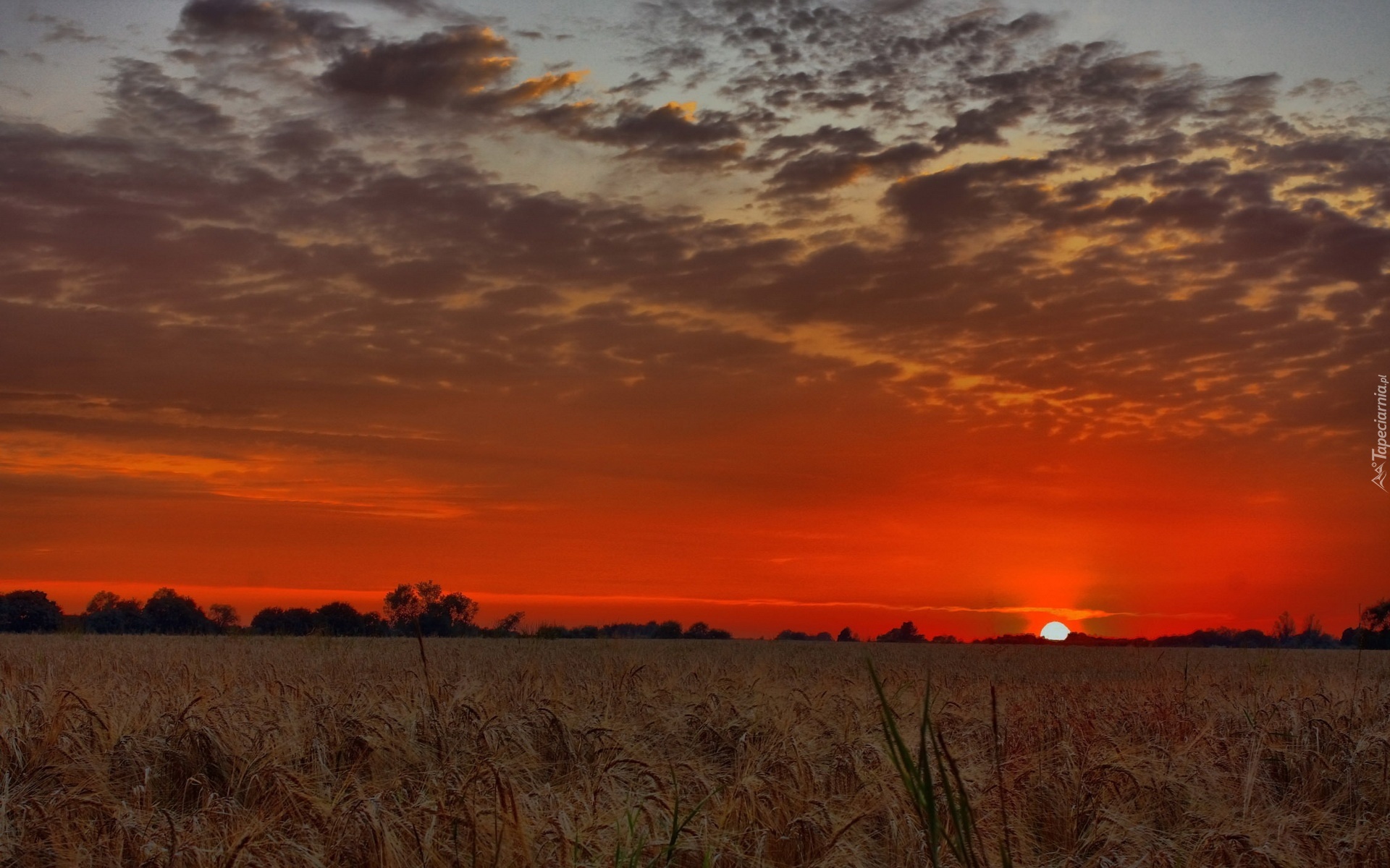 Edytor tapety: Pole, Zachód słońca, Chmury