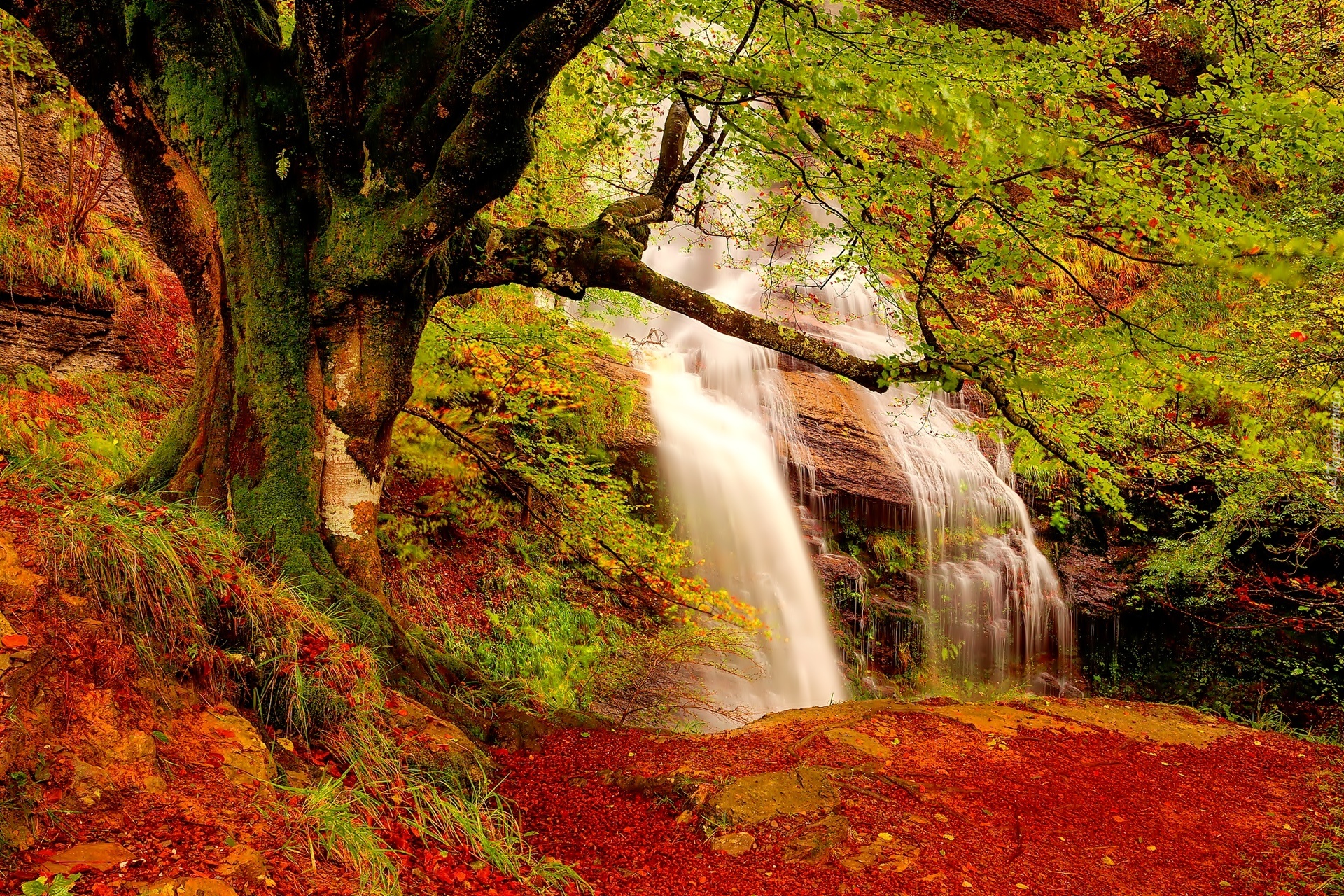 Edytor tapety: Jesień, Las, Wodospad