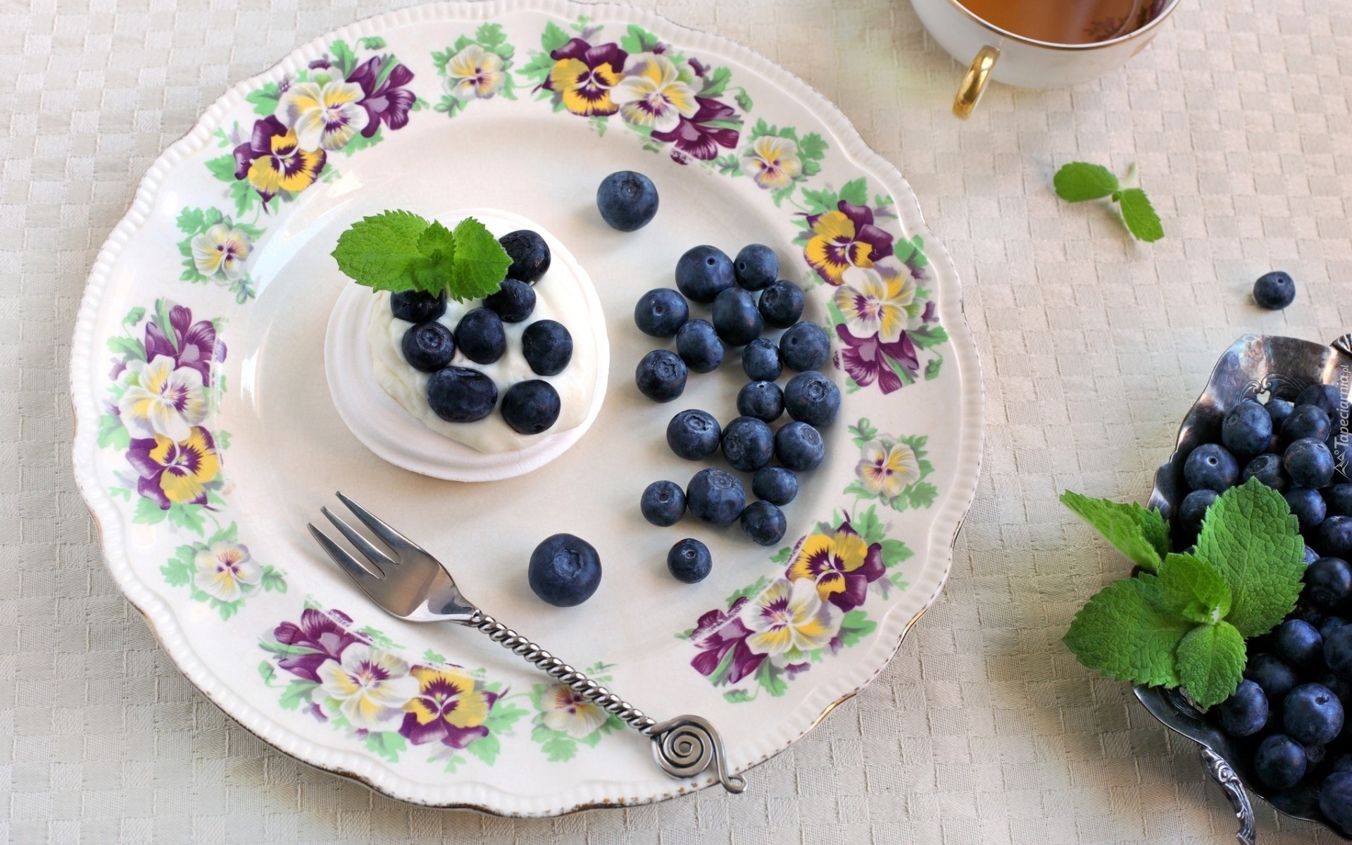 Edytor tapety: Jagody, Talerz, Widelec, Listki, Mięty