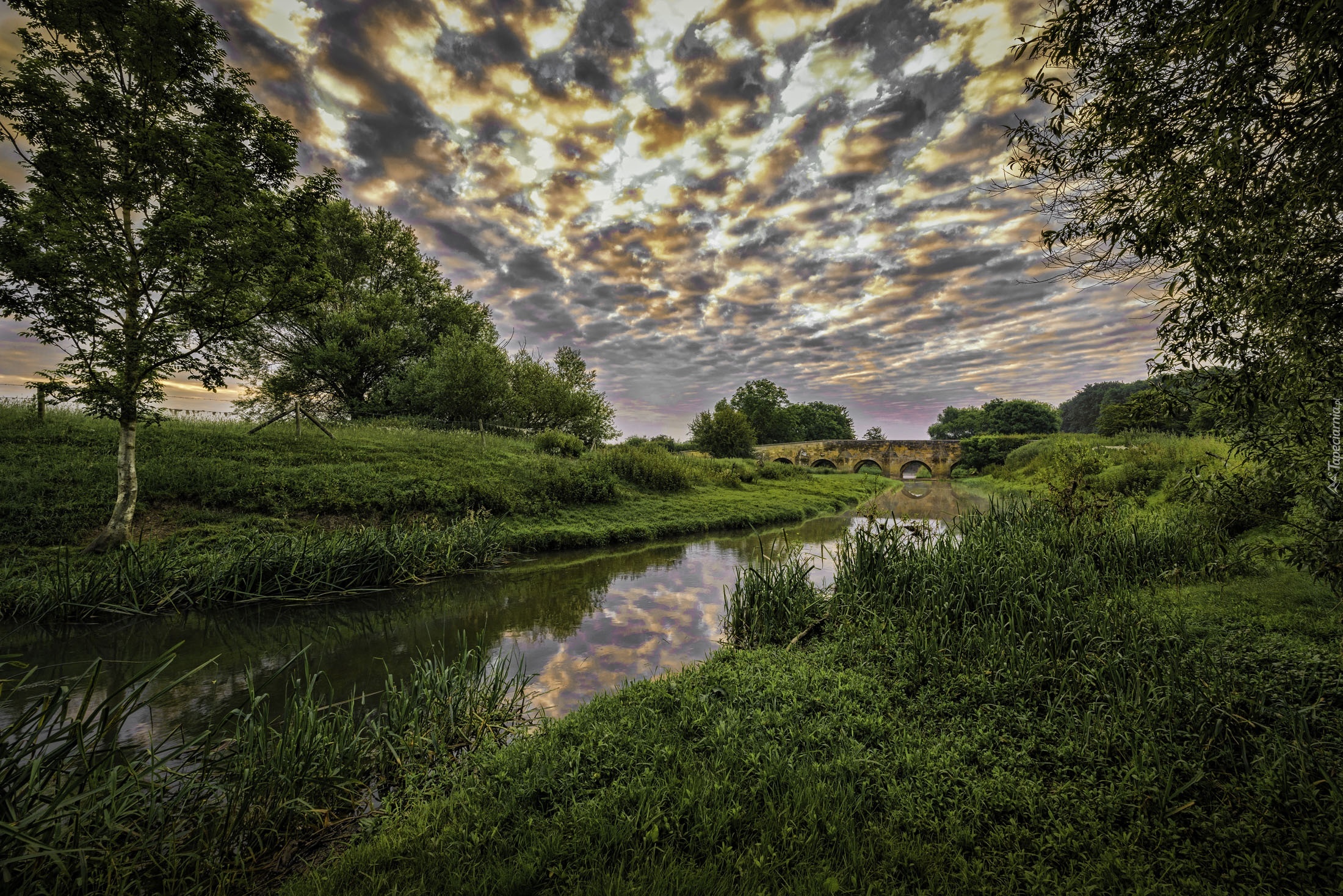 Edytor tapety: Rzeka, Chmury, Most, Mostek, Drzewa, Trawa