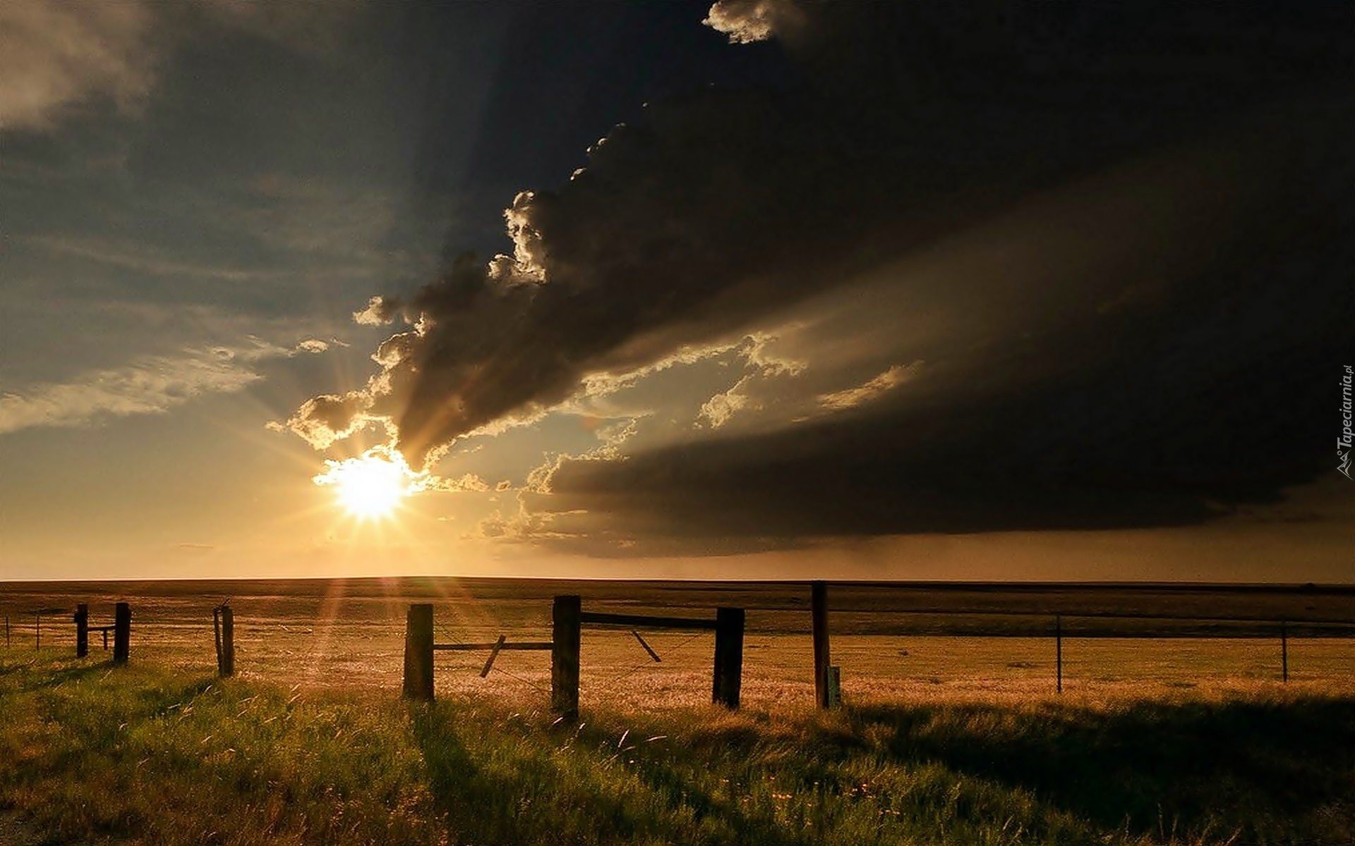 Edytor tapety: Pola, Chmury, Promienie, Słońca