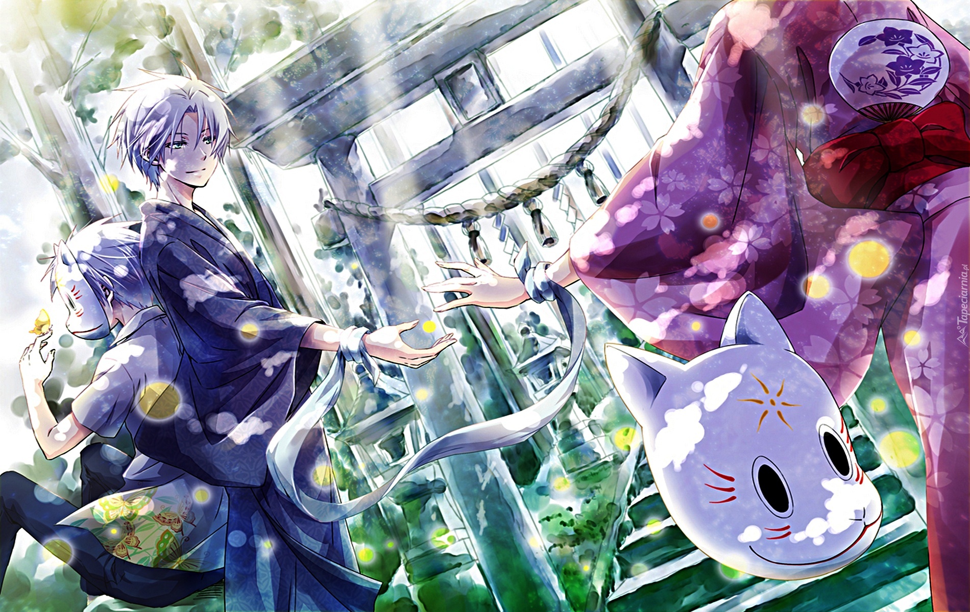 Edytor tapety: Hotarubi no mori e, postacie, kimona, maska