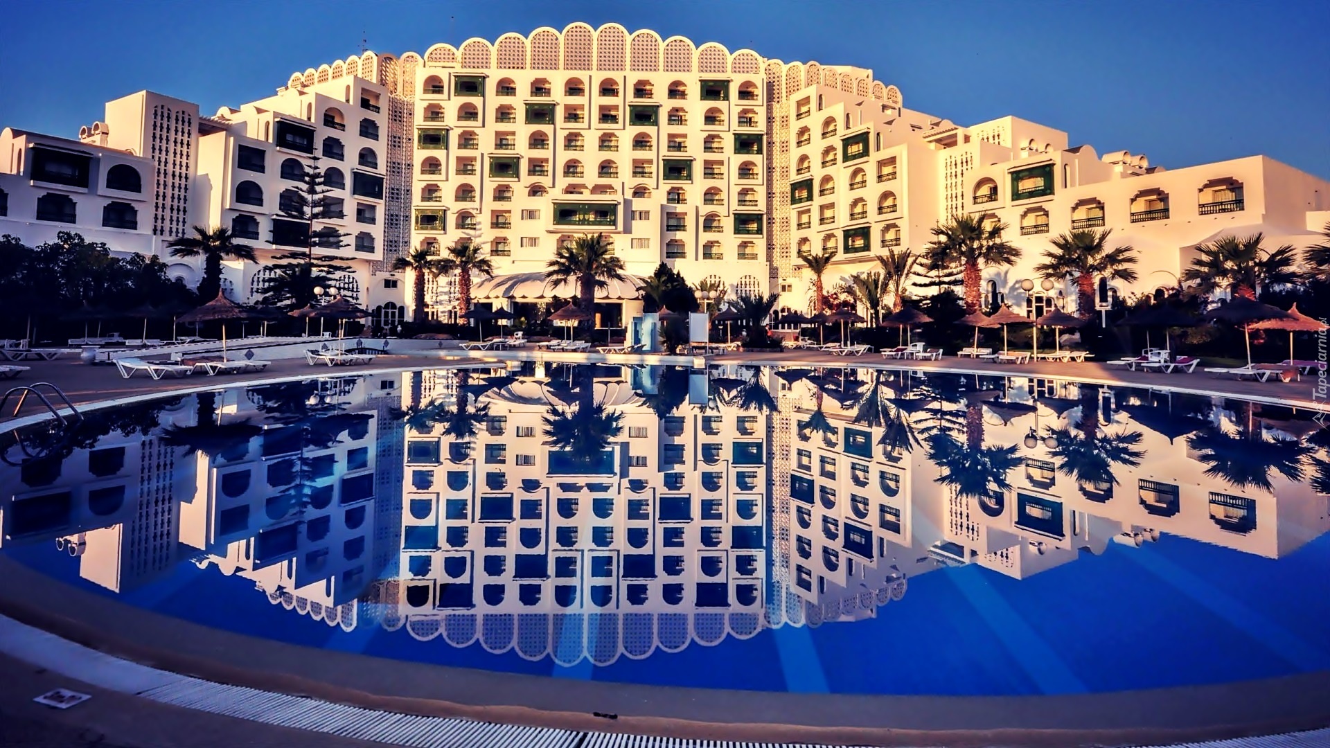 Edytor tapety: Hotel, Base, Palmy, Światło, Cień, Odbicie