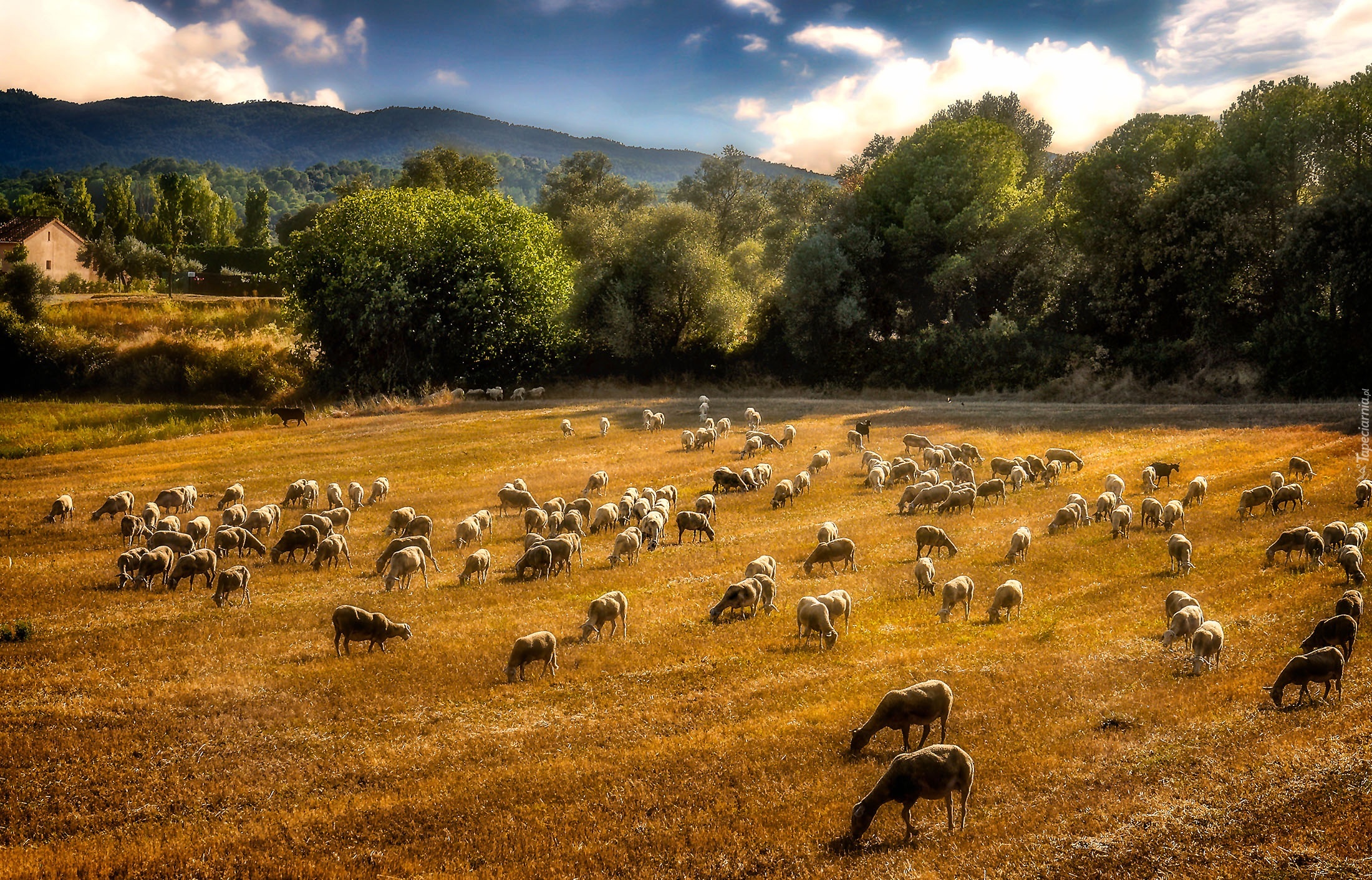 Edytor tapety: Barany, Owce, Pastwisko, Łąka, Góry, Las