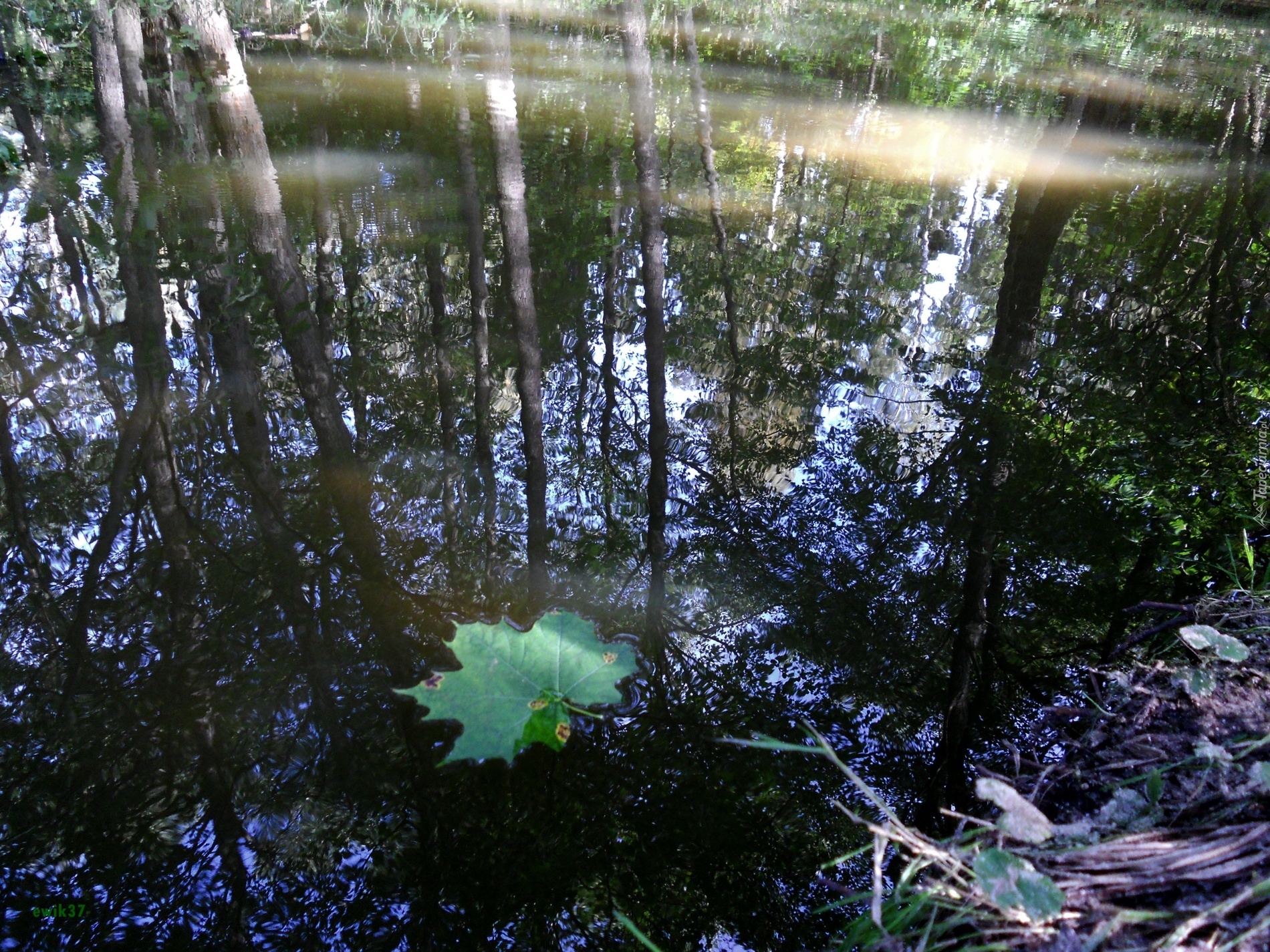 Edytor tapety: Rzeczka, Liść, Odbicie,Przebijające, Światło