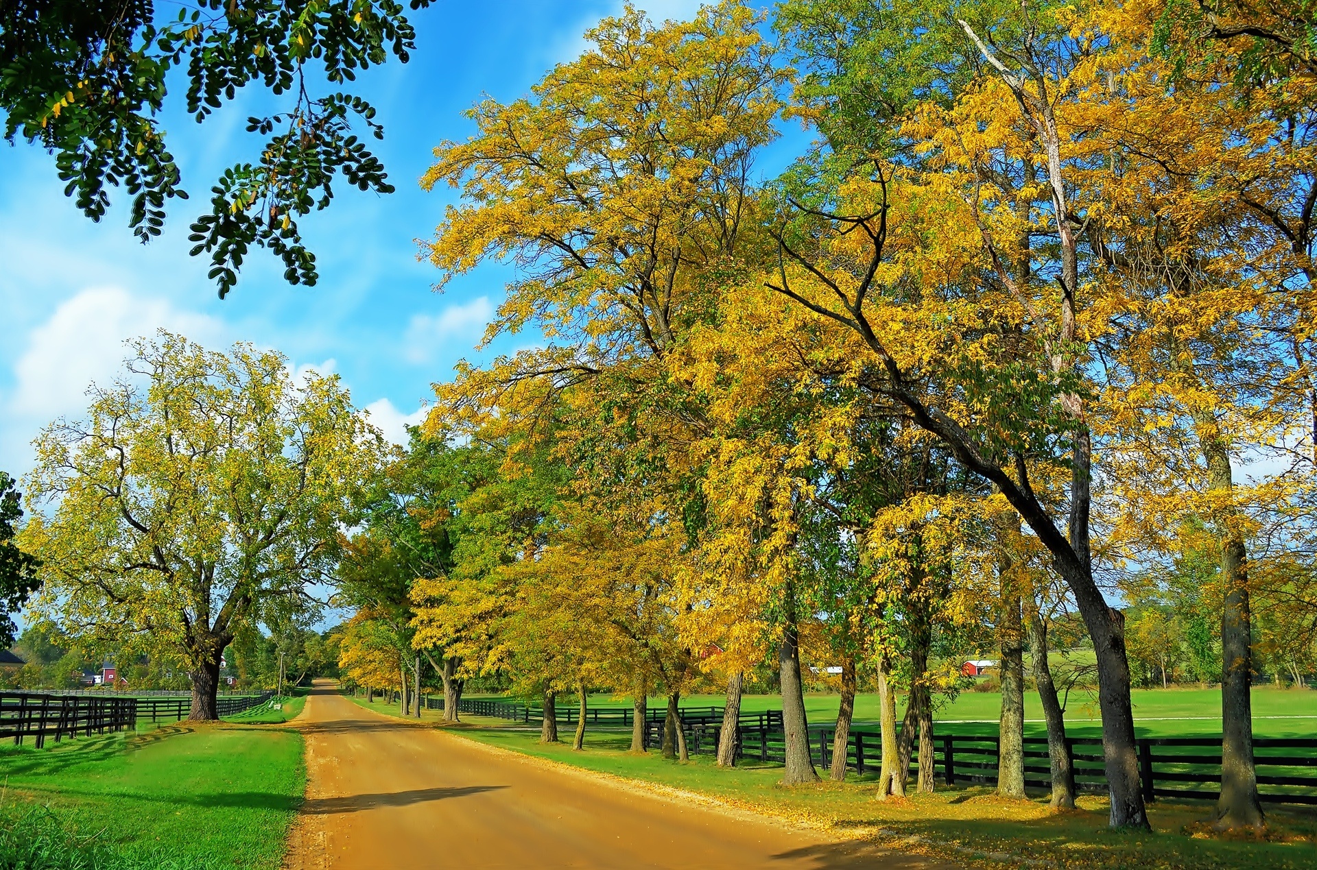 Edytor tapety: Droga, Drzewa, Trawa, Płot
