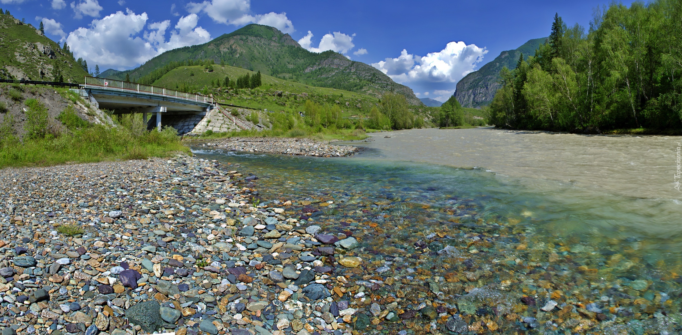 Edytor tapety: Kamienie, Woda, Las, Most