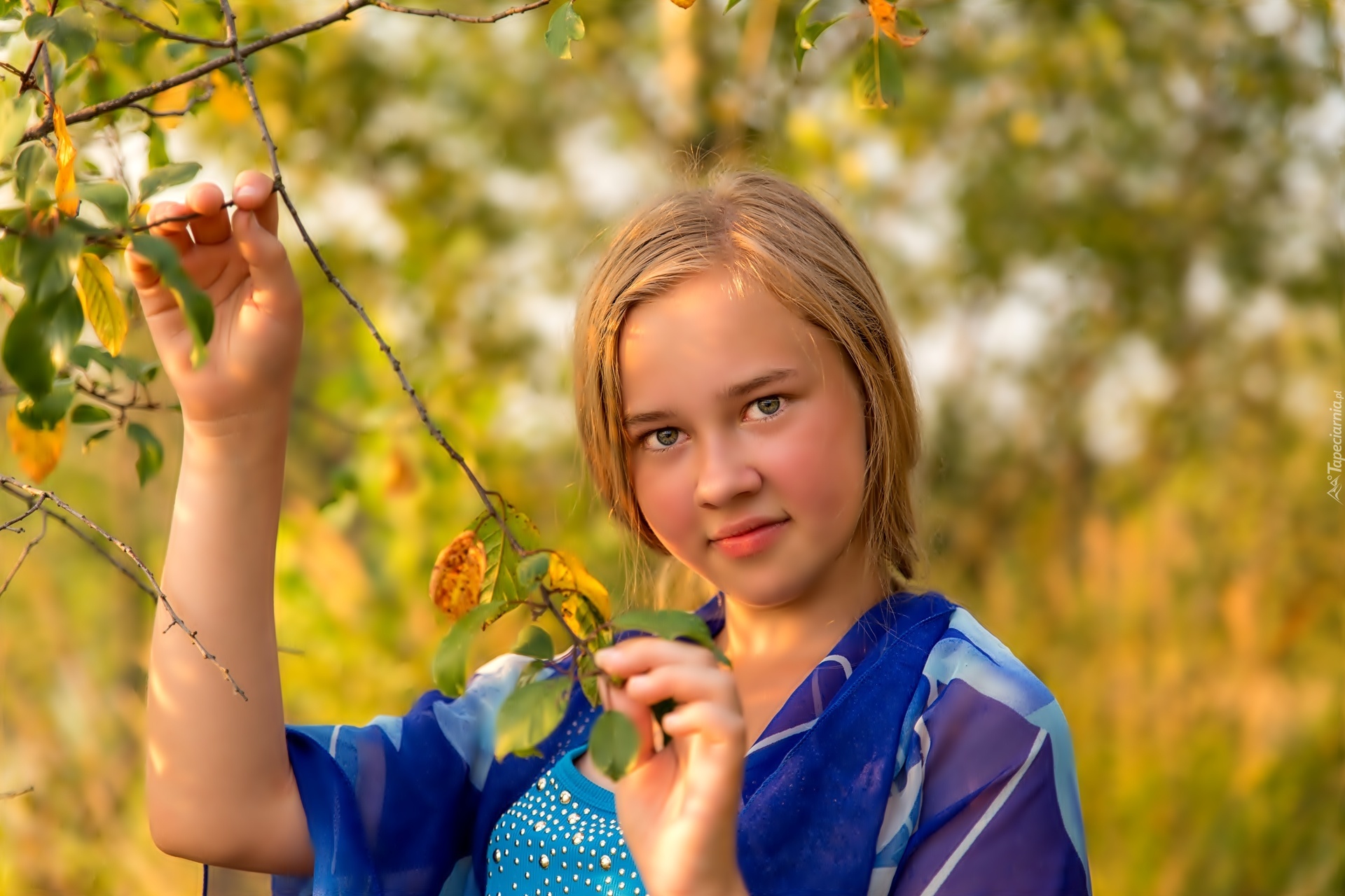 Edytor tapety: Jesień, Gałązka, Żółte, Liście, Dziewczyna