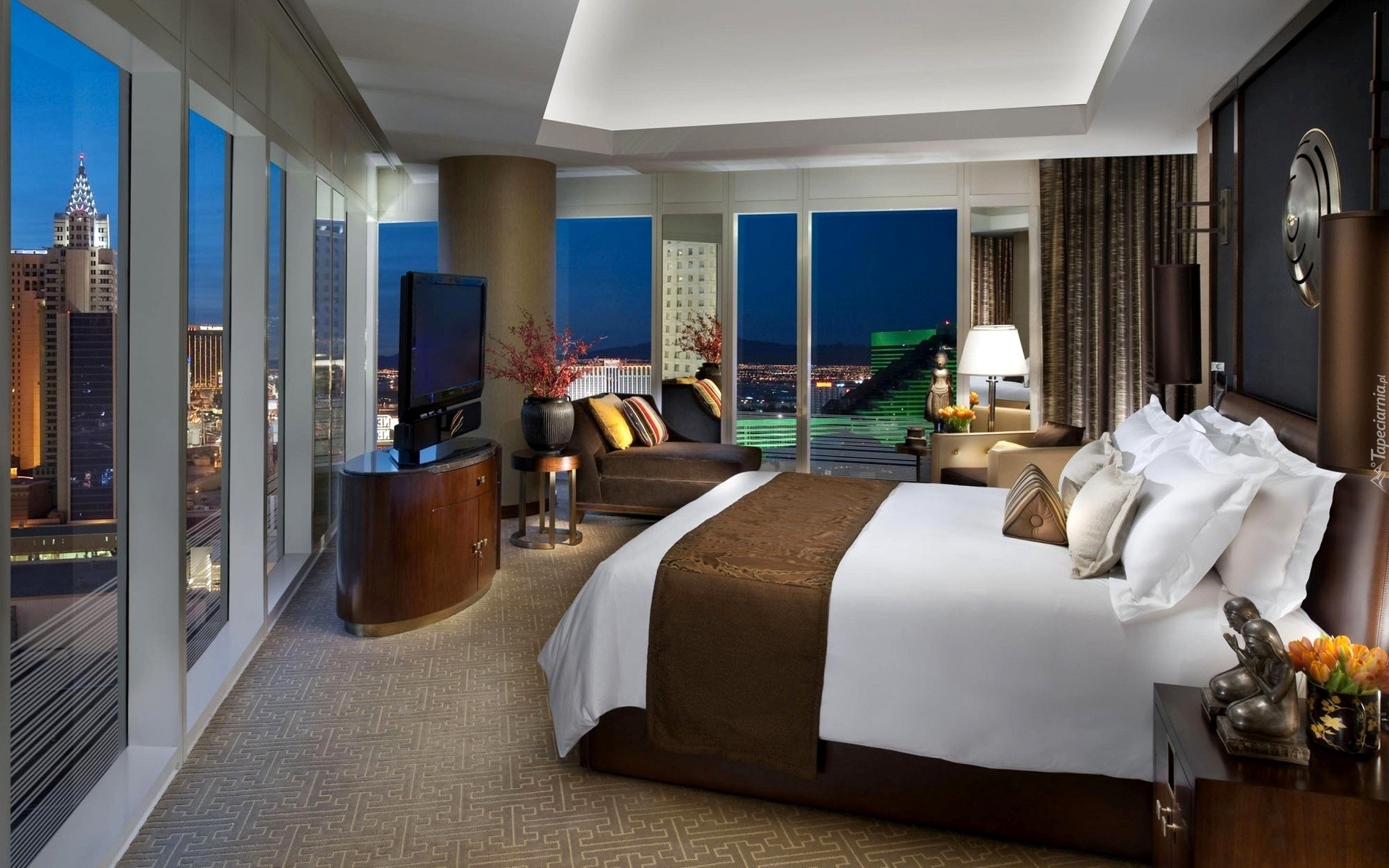 Edytor tapety: Wnętrze, Sypialnia, Widokowe okna, Miasto