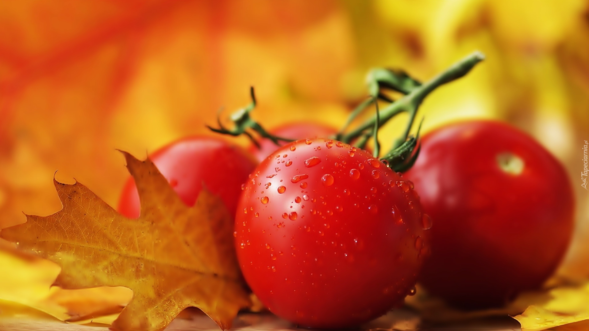 Edytor tapety: Pomidory, Liść, Dębu, Krople