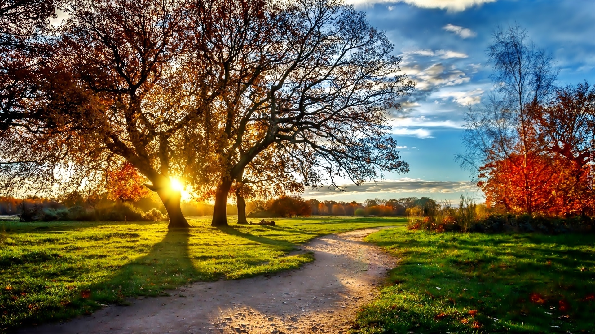 Edytor tapety: Jesień, Droga, Słońce, Drzewo