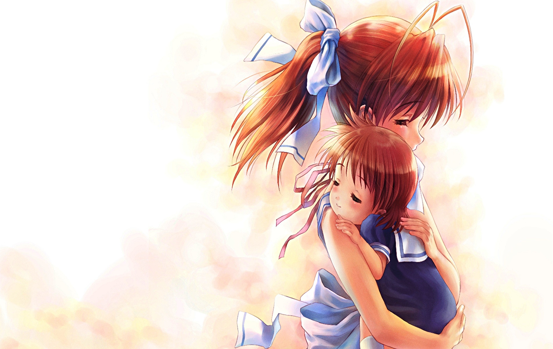 Edytor tapety: Clannad, Nagisa, Ushio, przytulanie