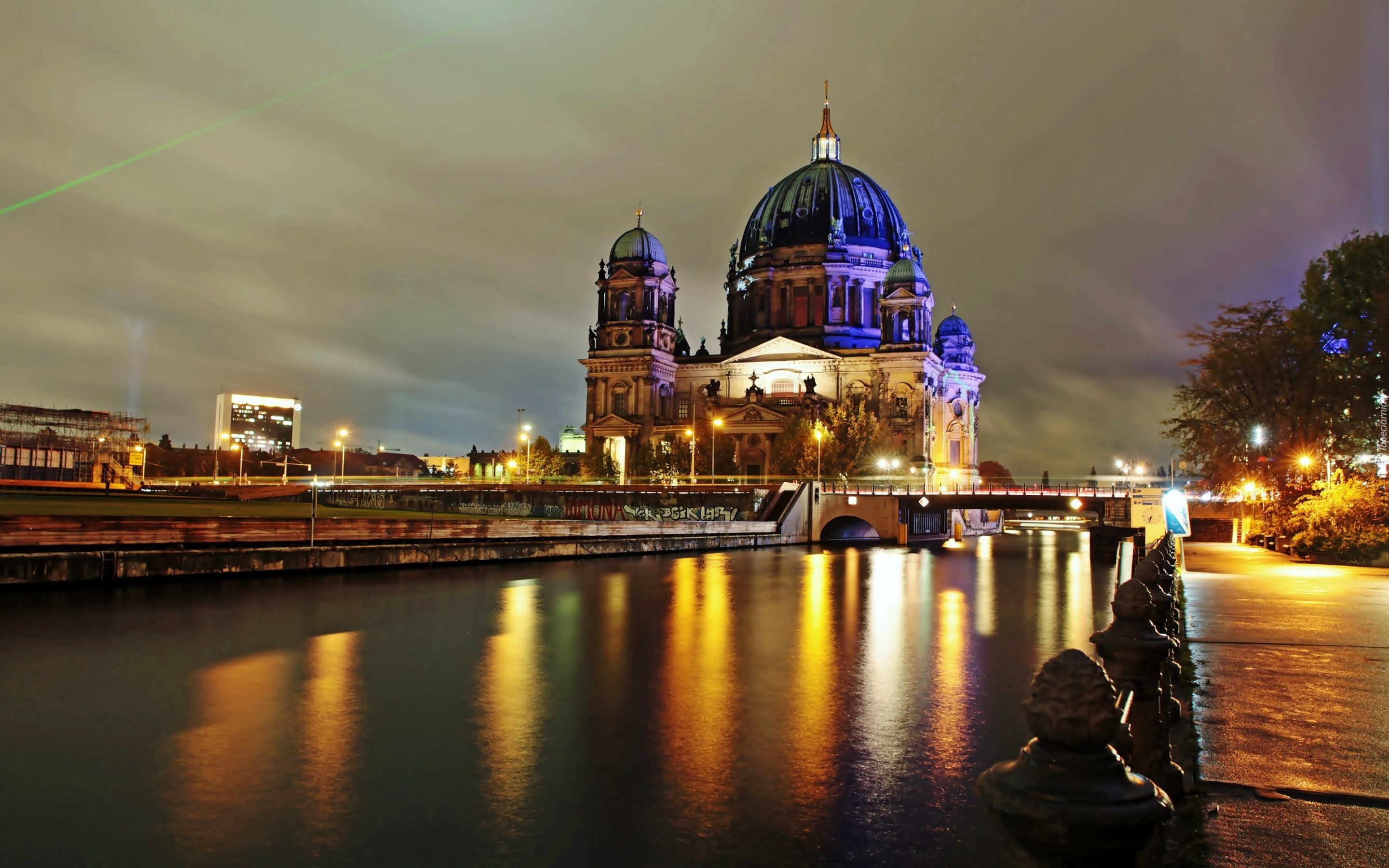 Edytor tapety: Rzeka, Szprewa, Most, Katedra, Berlin, Miasto, Nocą