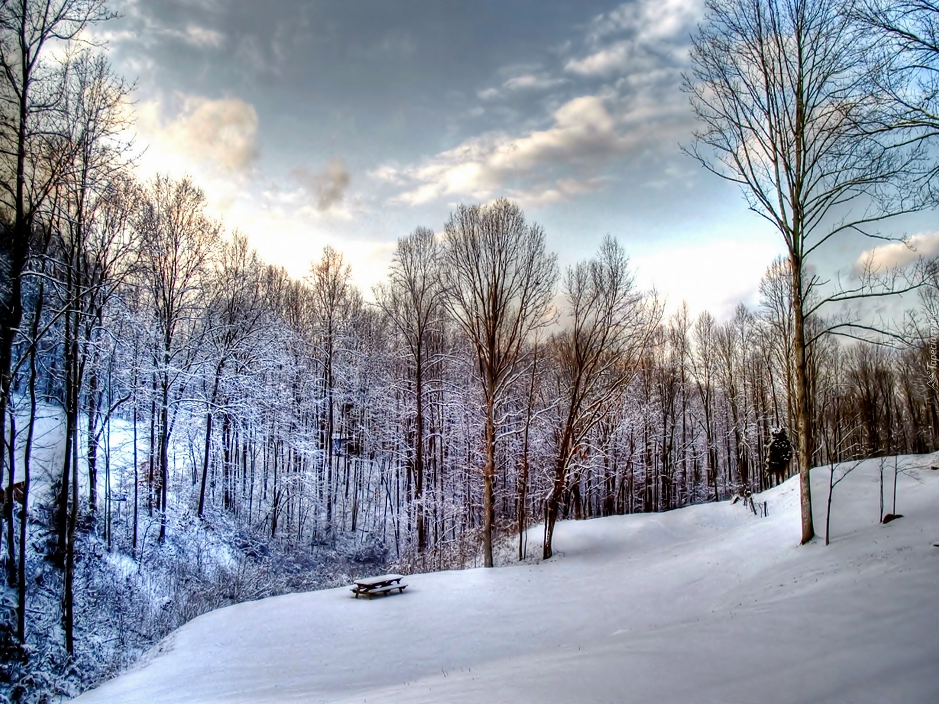 Edytor tapety: Las, Wzgórza, Zima, Chmury