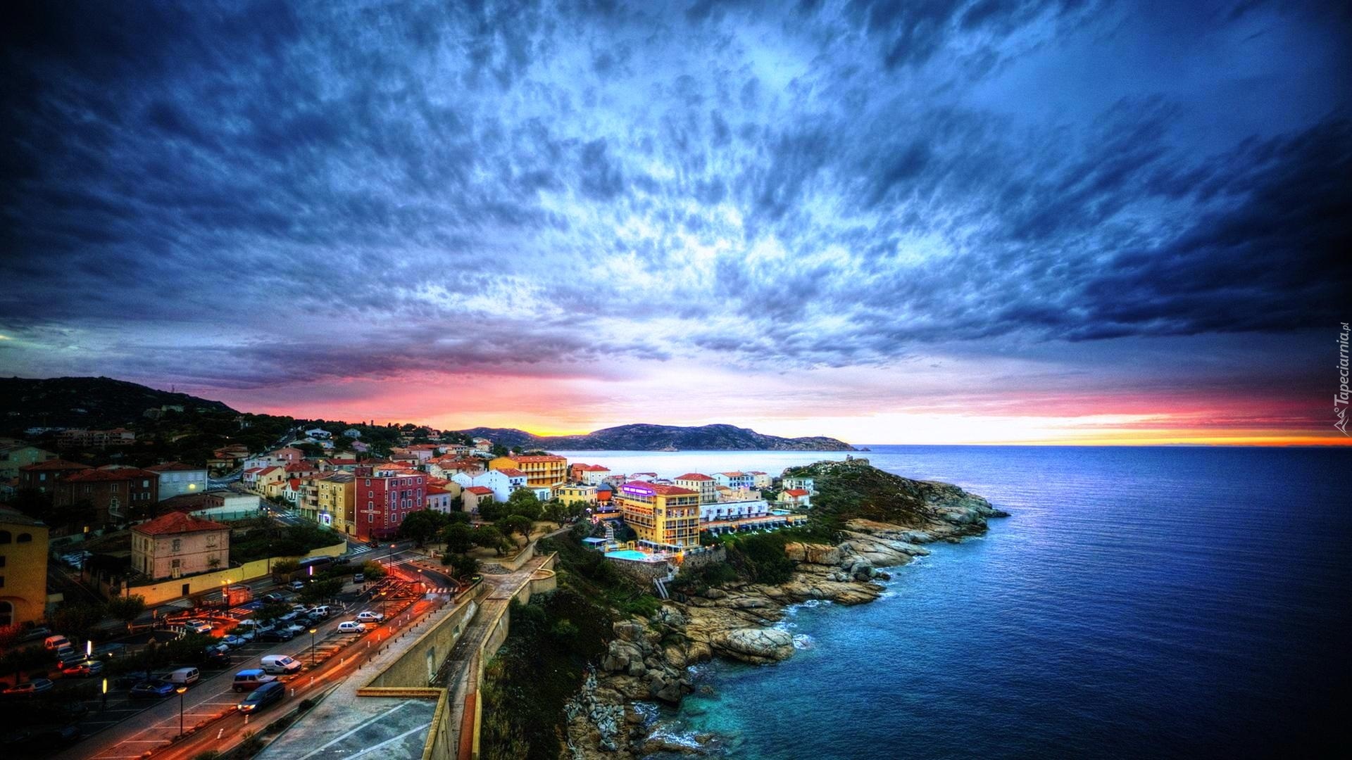 Edytor tapety: Miasteczko, Wybrzeże, Morze, Francja, Z lotu ptaka