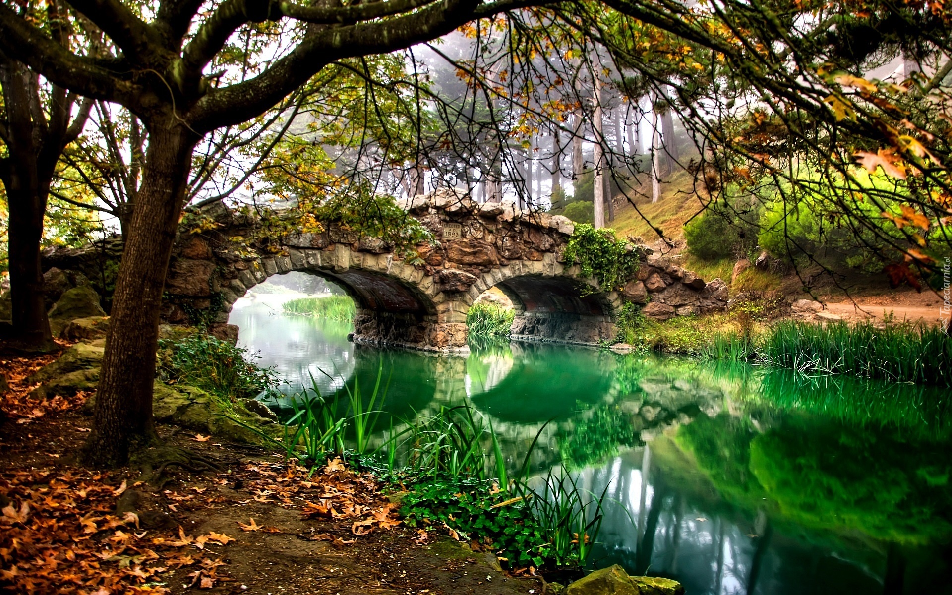 Edytor tapety: Stany Zjednoczone, San Francisco, Park Golden Gate, Rzeka, Most, Drzewa, Jesień