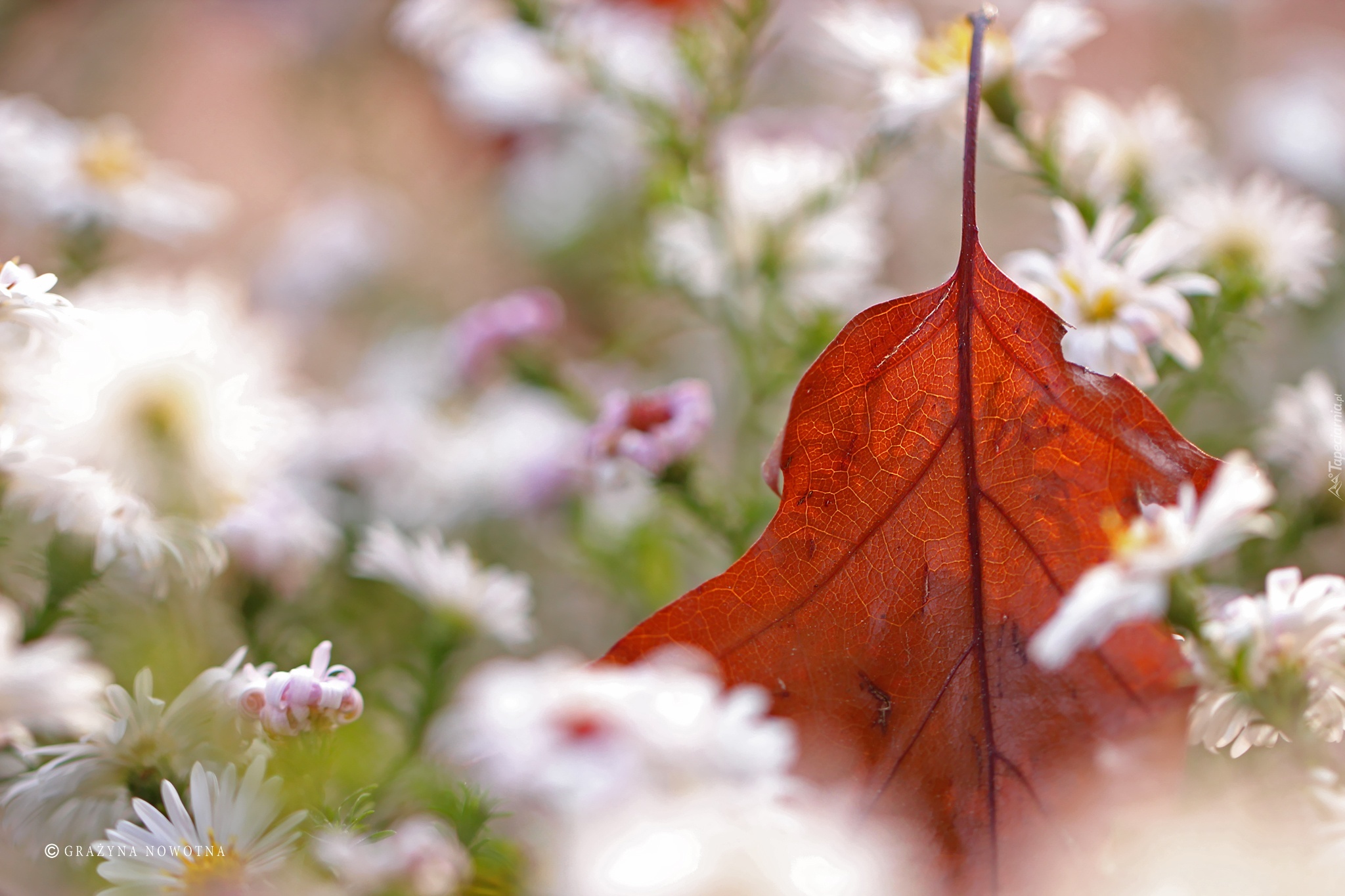 Edytor tapety: Białe, Kwiaty, Astry, Suchy, Liść