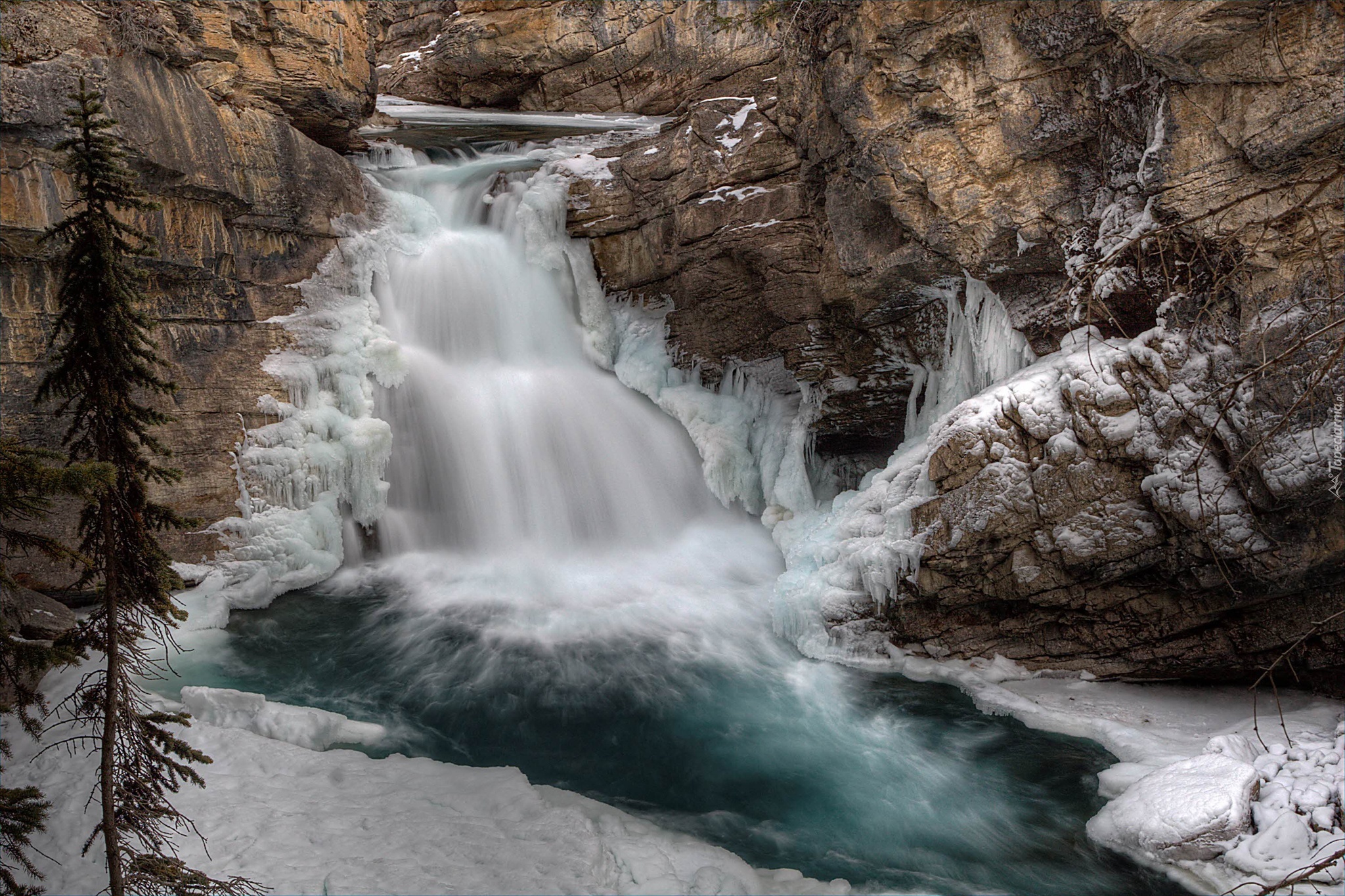 Edytor tapety: Wodospad, Skały, Sople, Zima