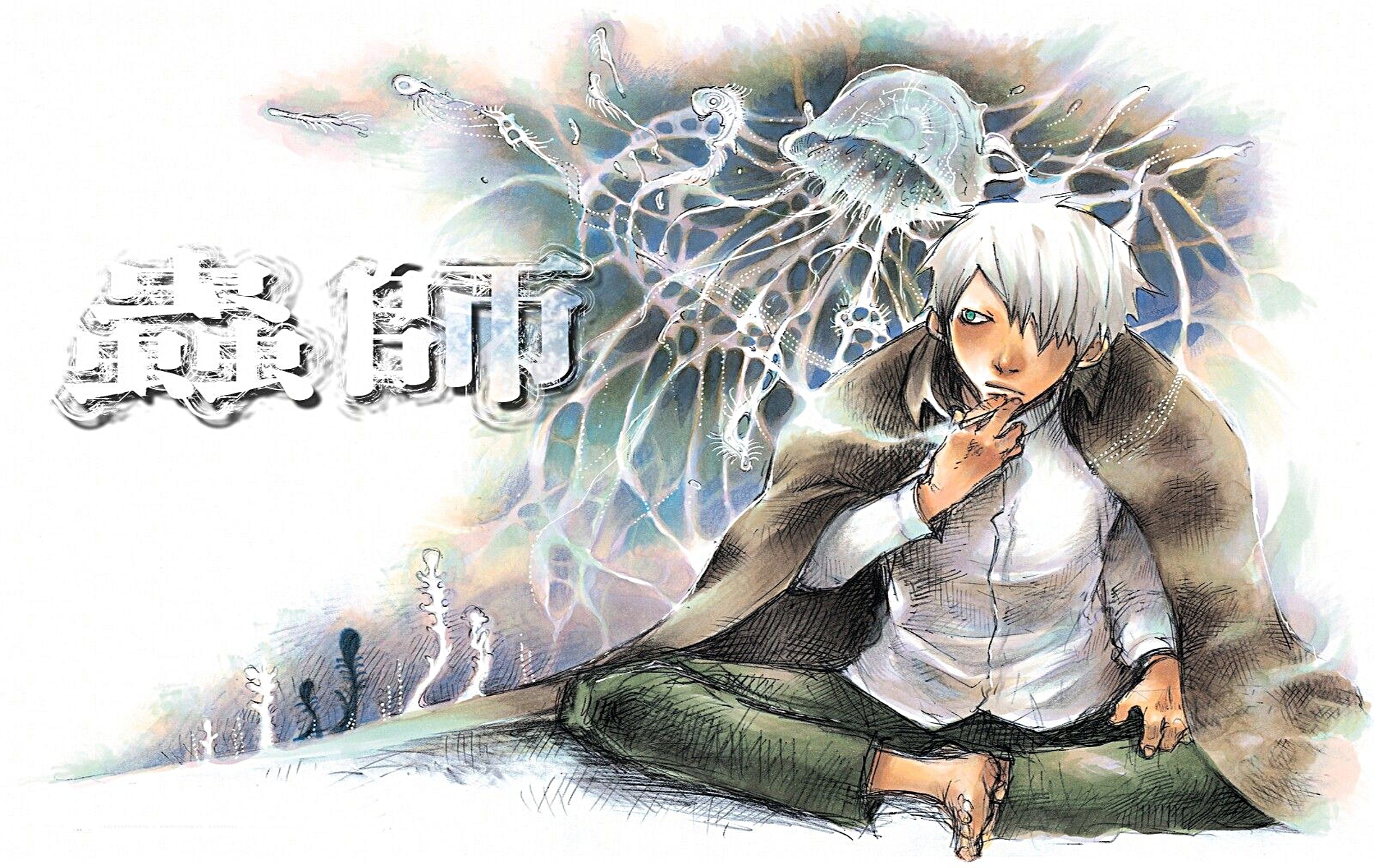 Edytor tapety: Mushi Shi, anime, chłopak, kanji, napis