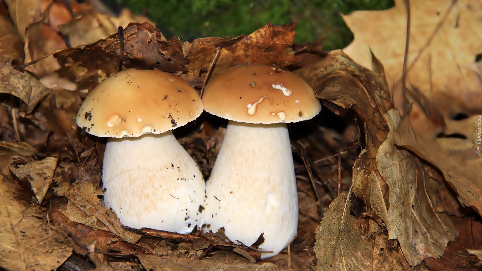 Edytor tapety: Dwa, Grzyby, Liście, Jesień