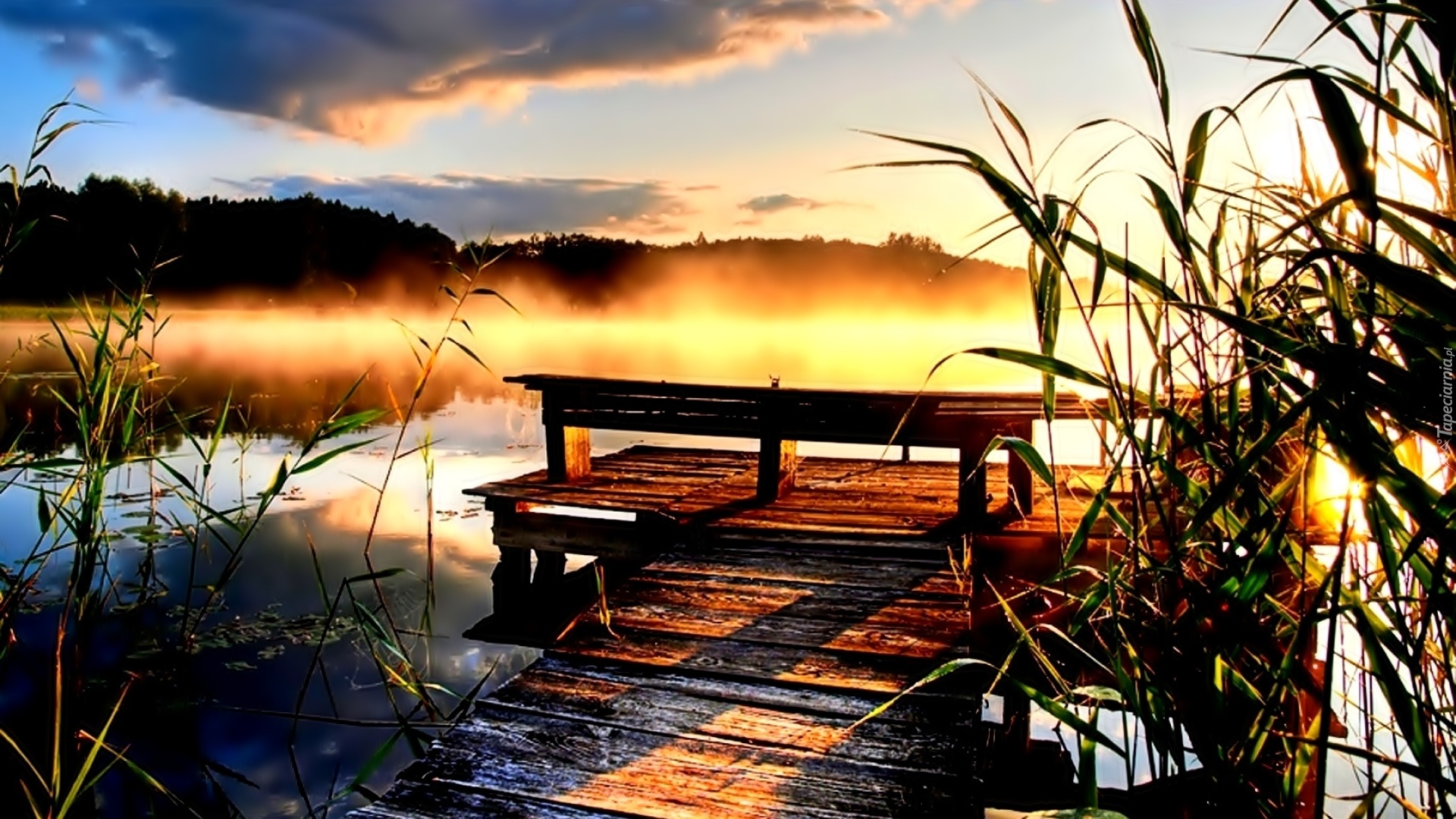 Edytor tapety: Jezioro, Mgła, Przebijające Światło, Pomost