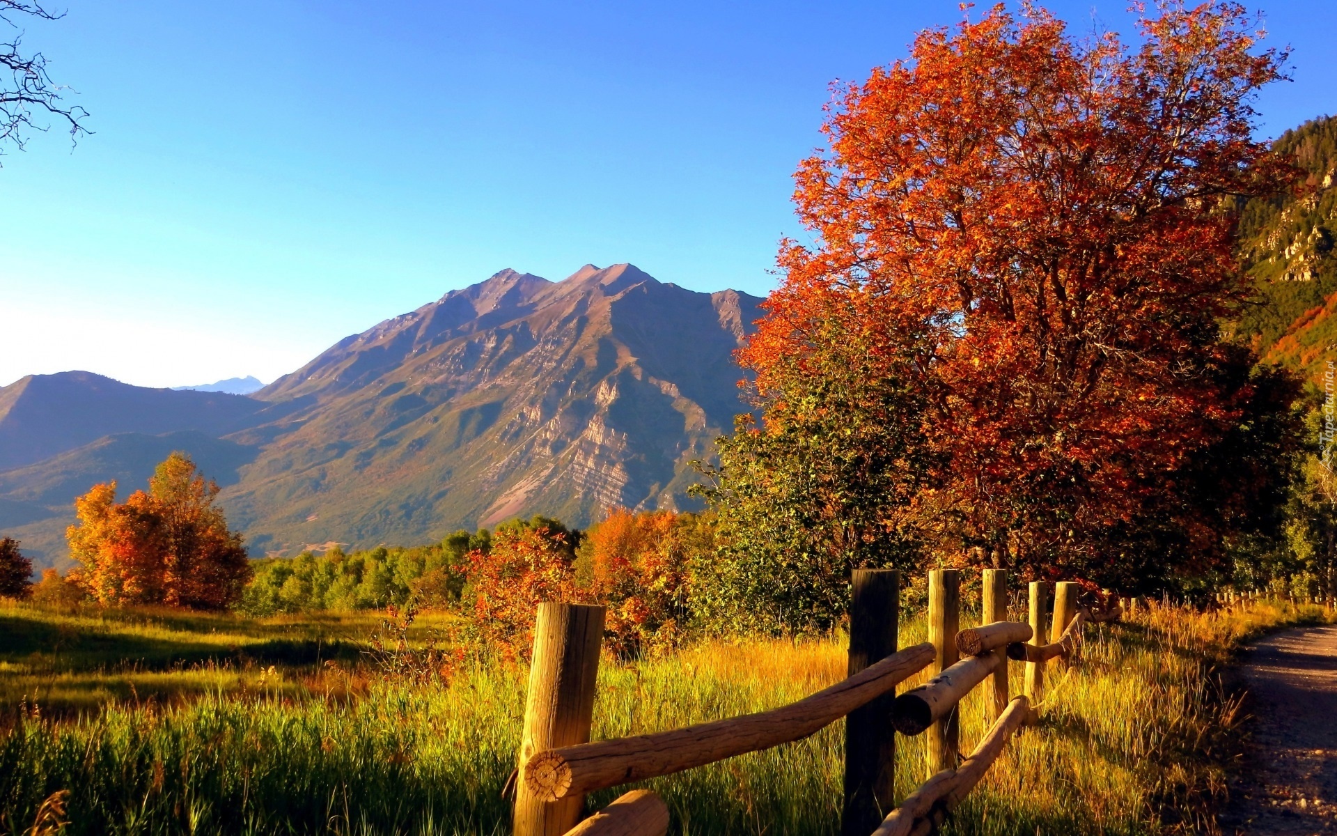 Edytor tapety: Góry, Jesień, Dróżka, Płot