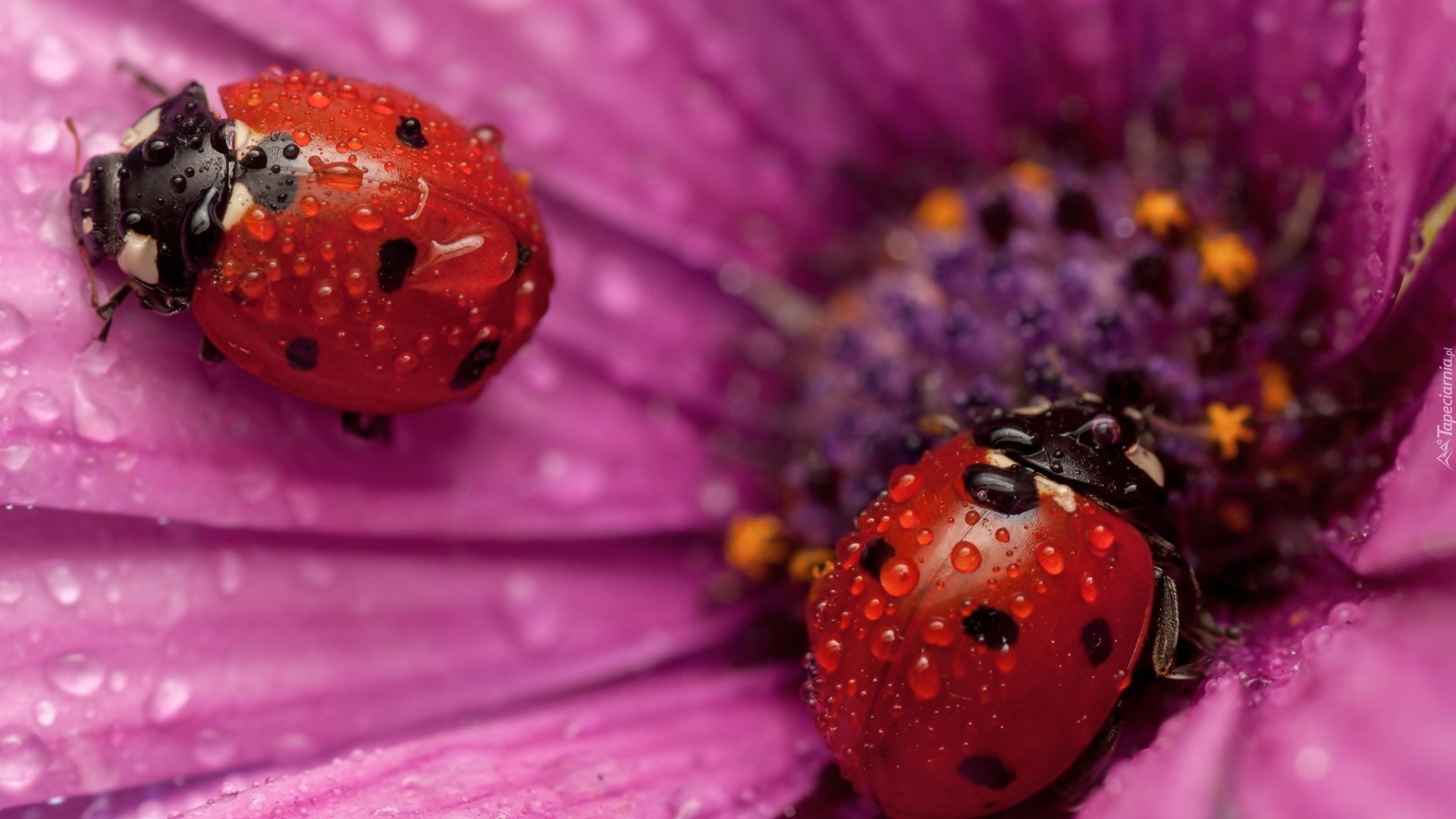Edytor tapety: Kwiatek, Dwie, Biedronki, Krople