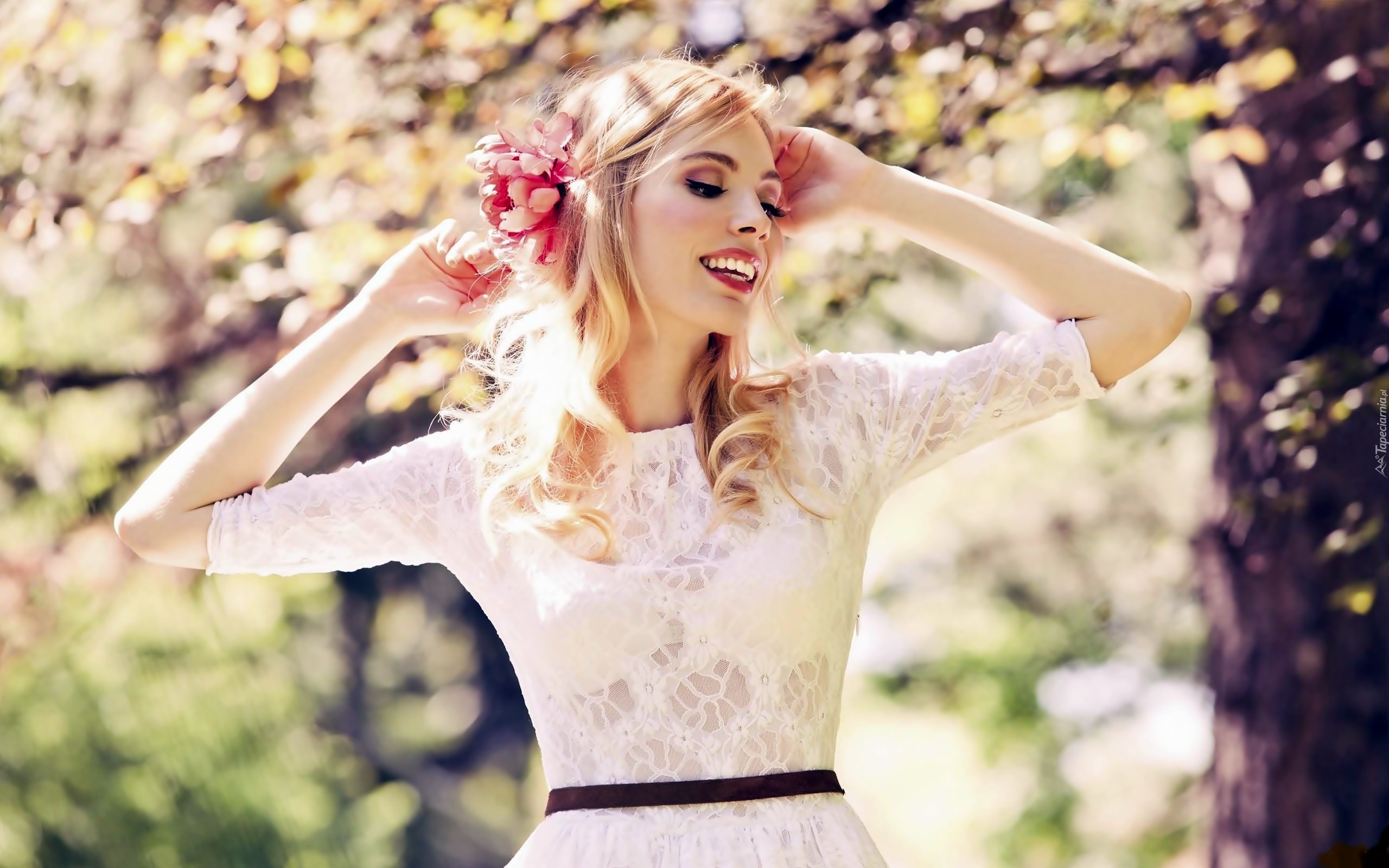 Edytor tapety: Kobieta, Modelka, Uśmiech, Kwiat