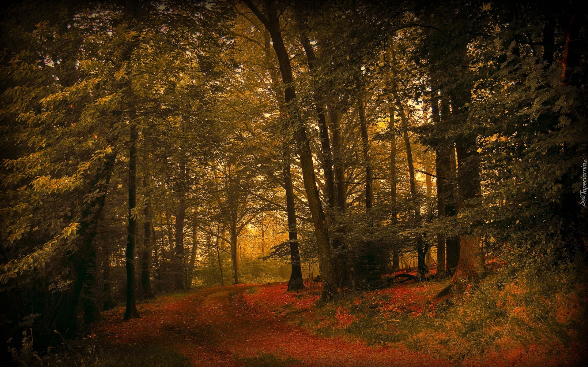 Edytor tapety: Las, Liście, Droga