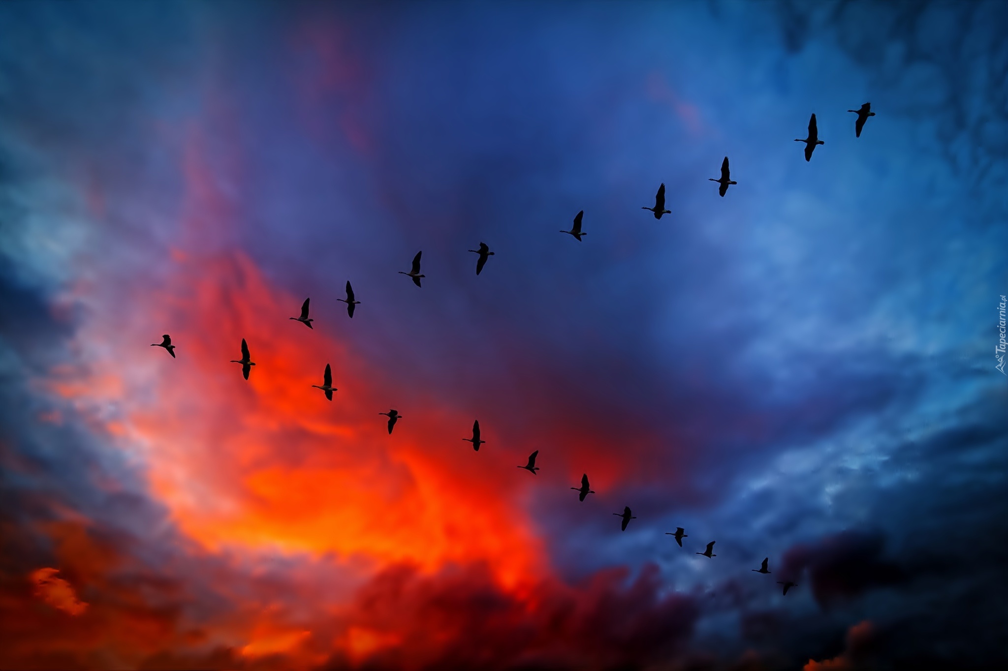 Edytor tapety: Niebo, Zachód, Słońca, Dzikie, Gęsi