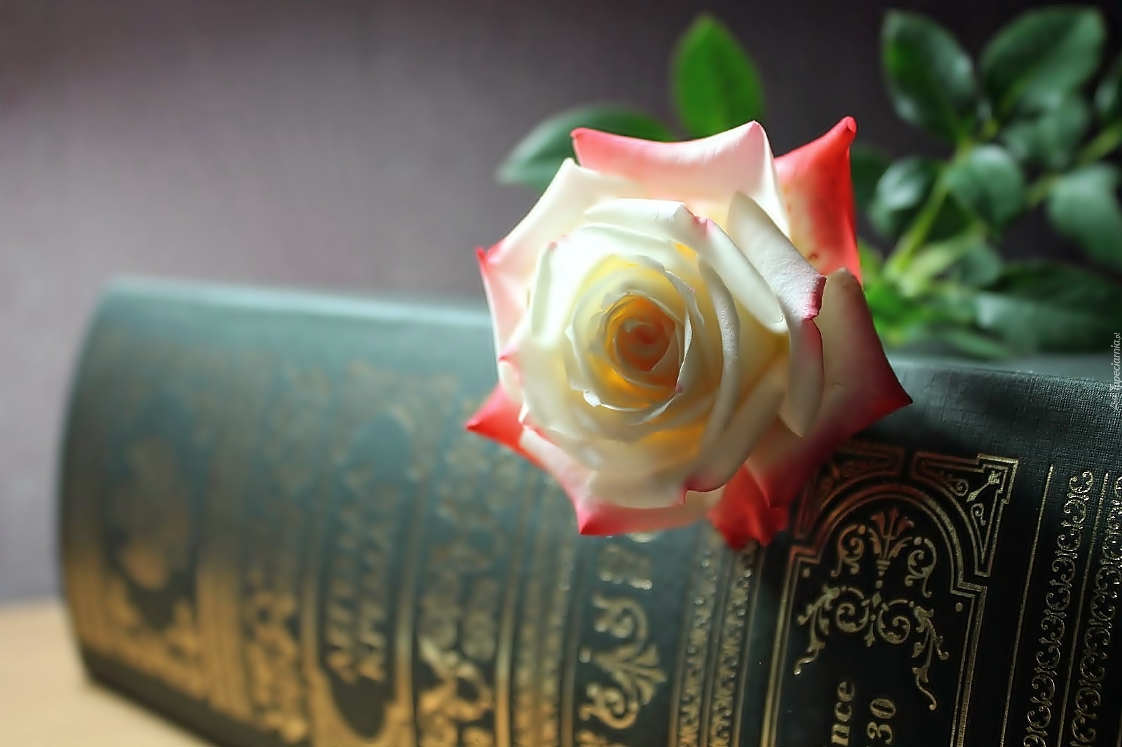 Edytor tapety: Biało, Różowa, Róża, Książka